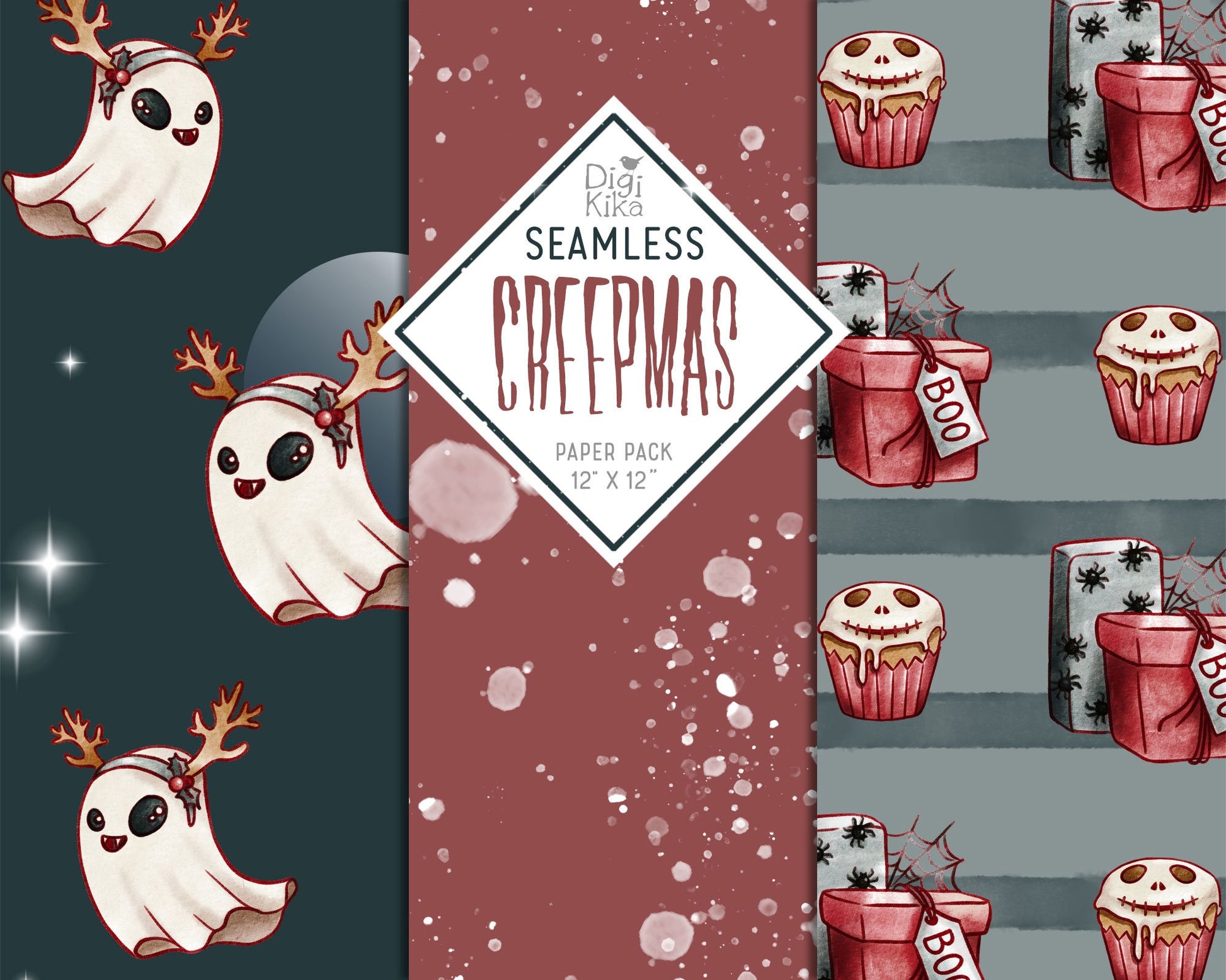 Creepmas Seamless Papers, Christmas Tileable Pattern, Scrapbook, Digital Paper, invitation, background, planner sticker, planner supply