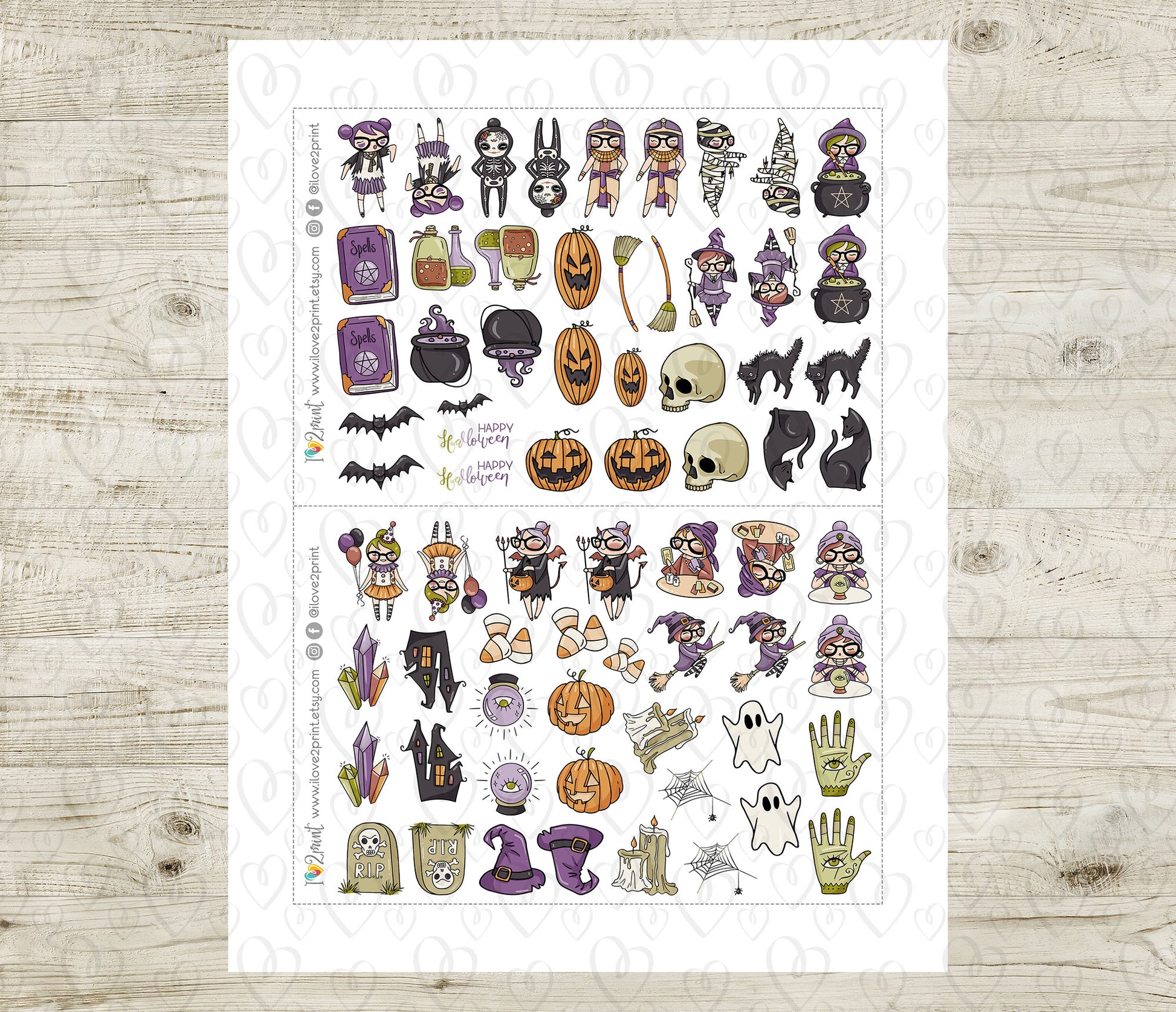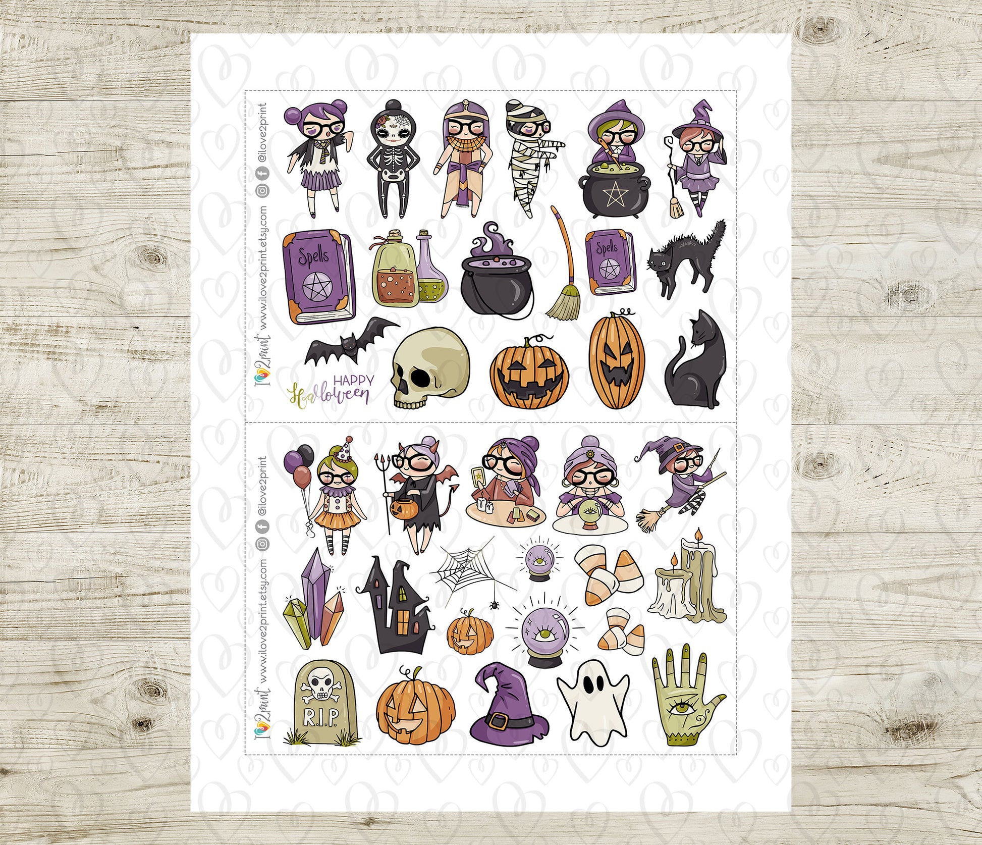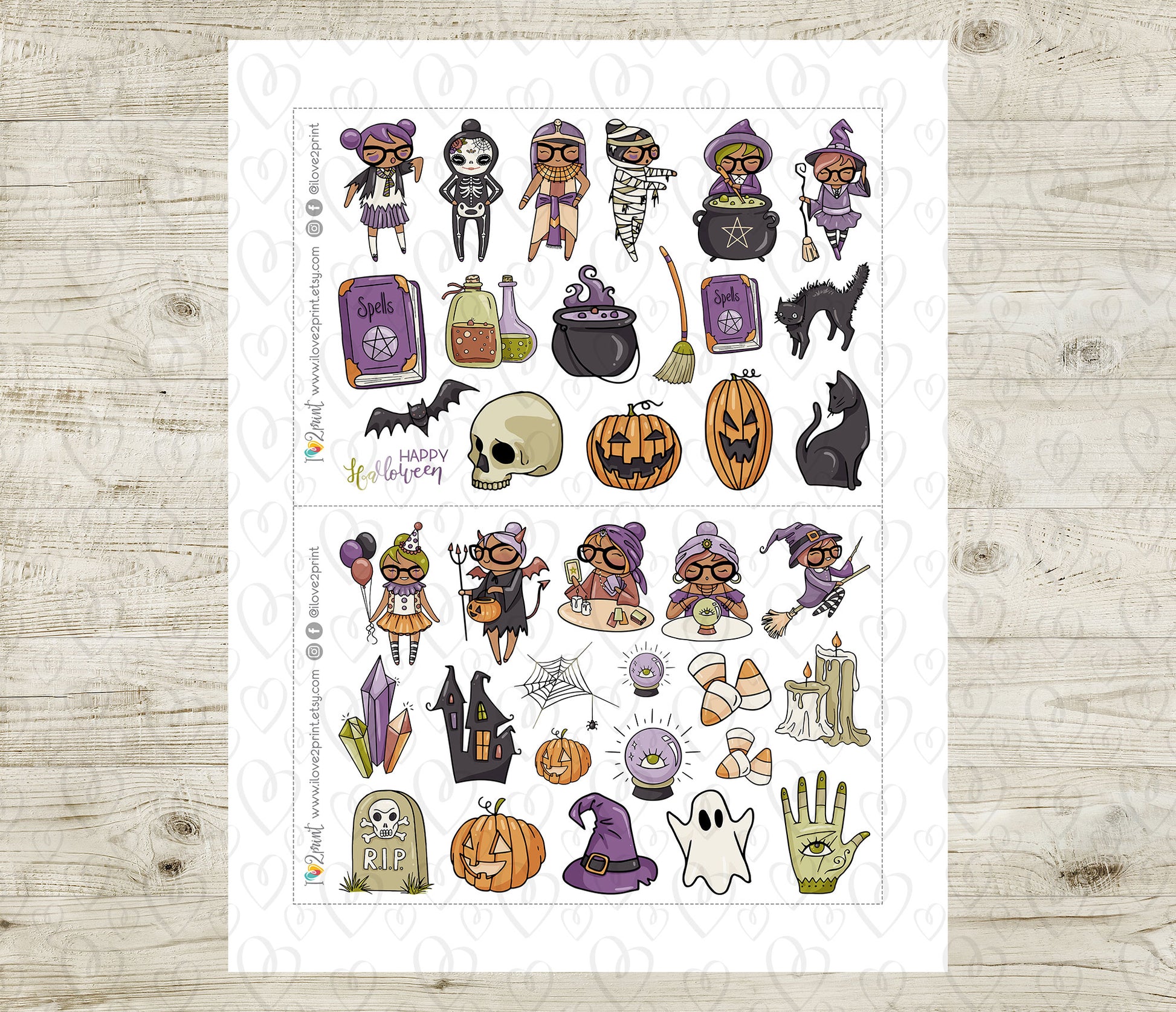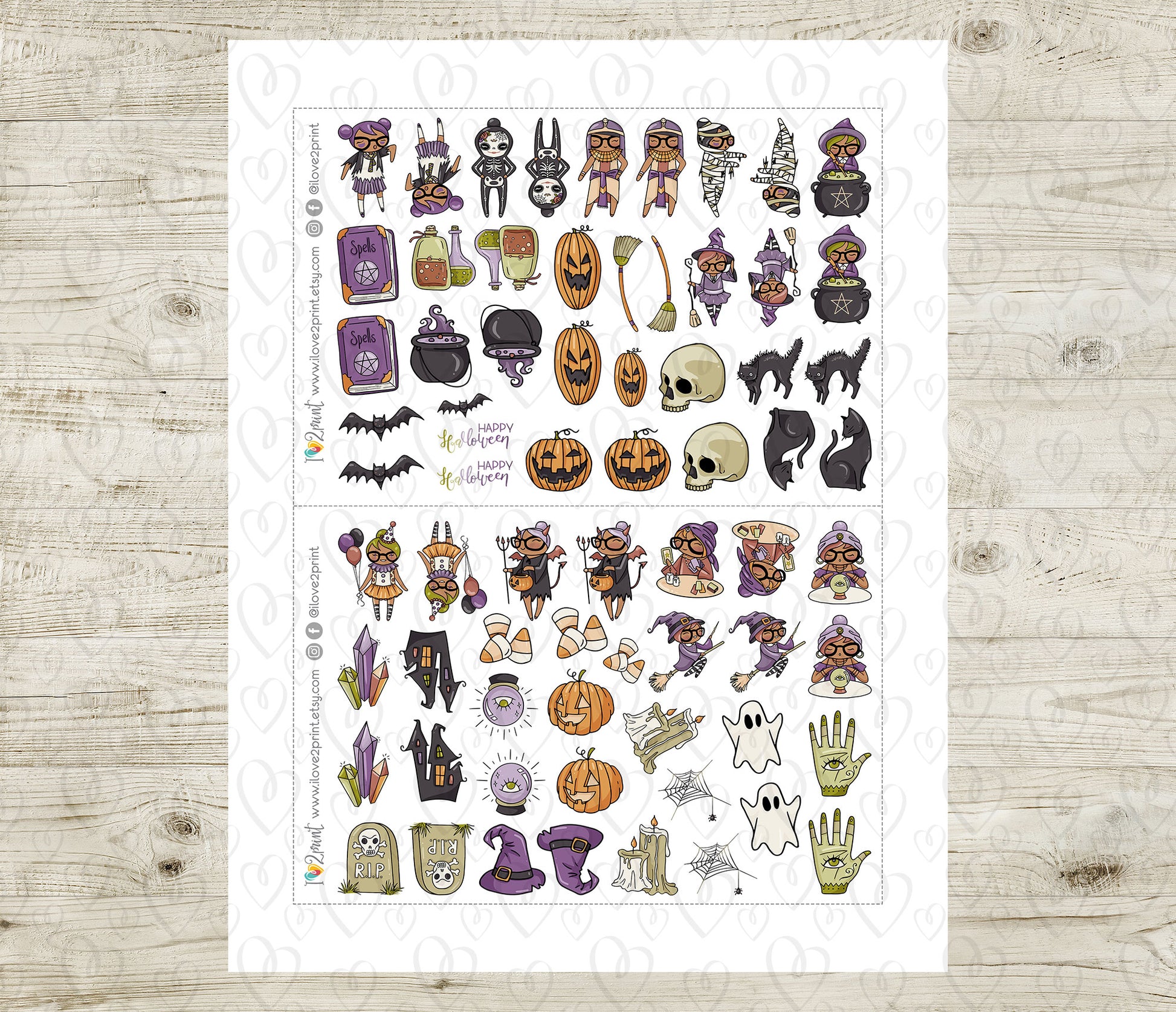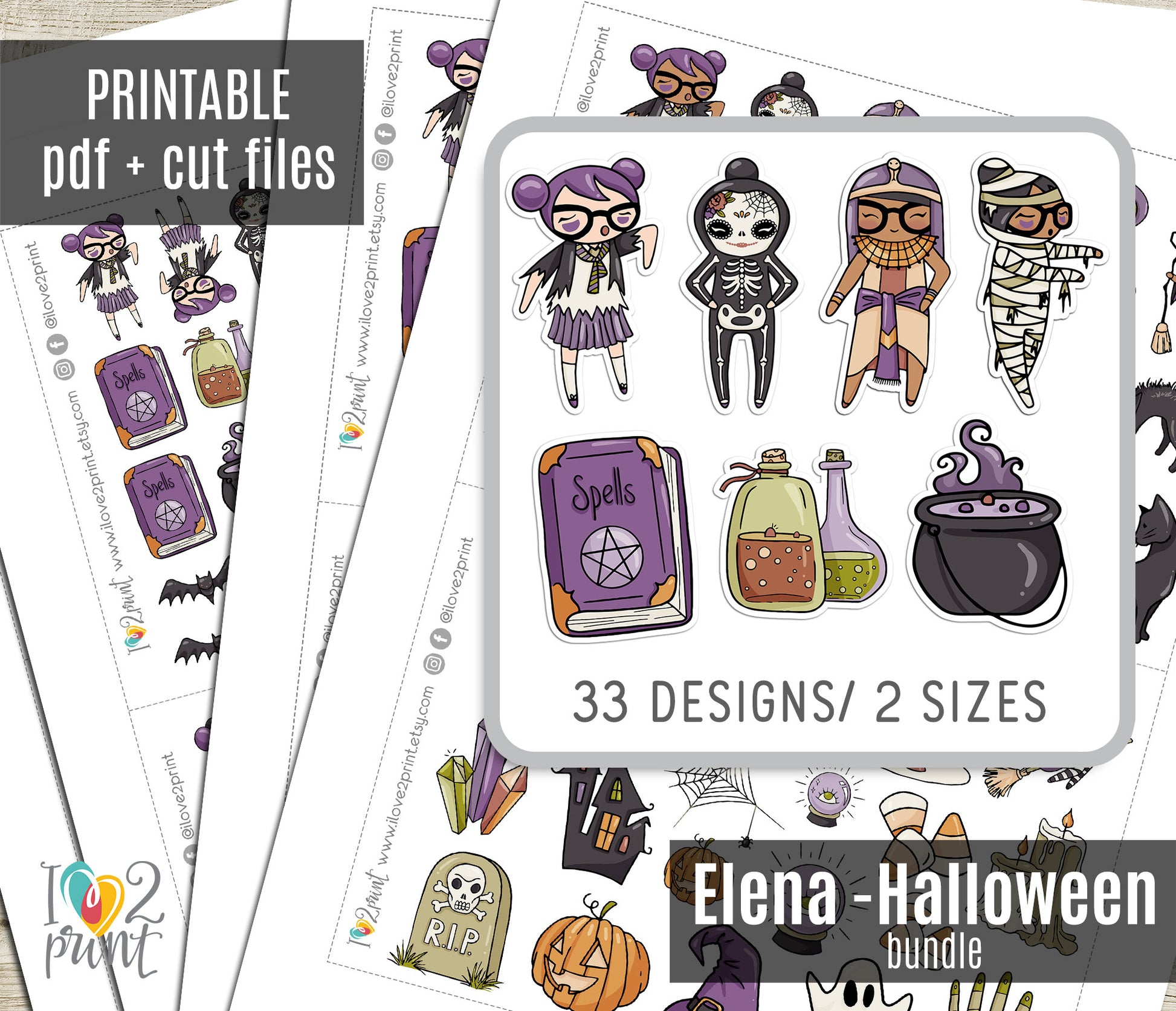Elena Halloween BUNDLE – Color (2 skin tones) Printable Planner Stickers – PDF + Cut Files