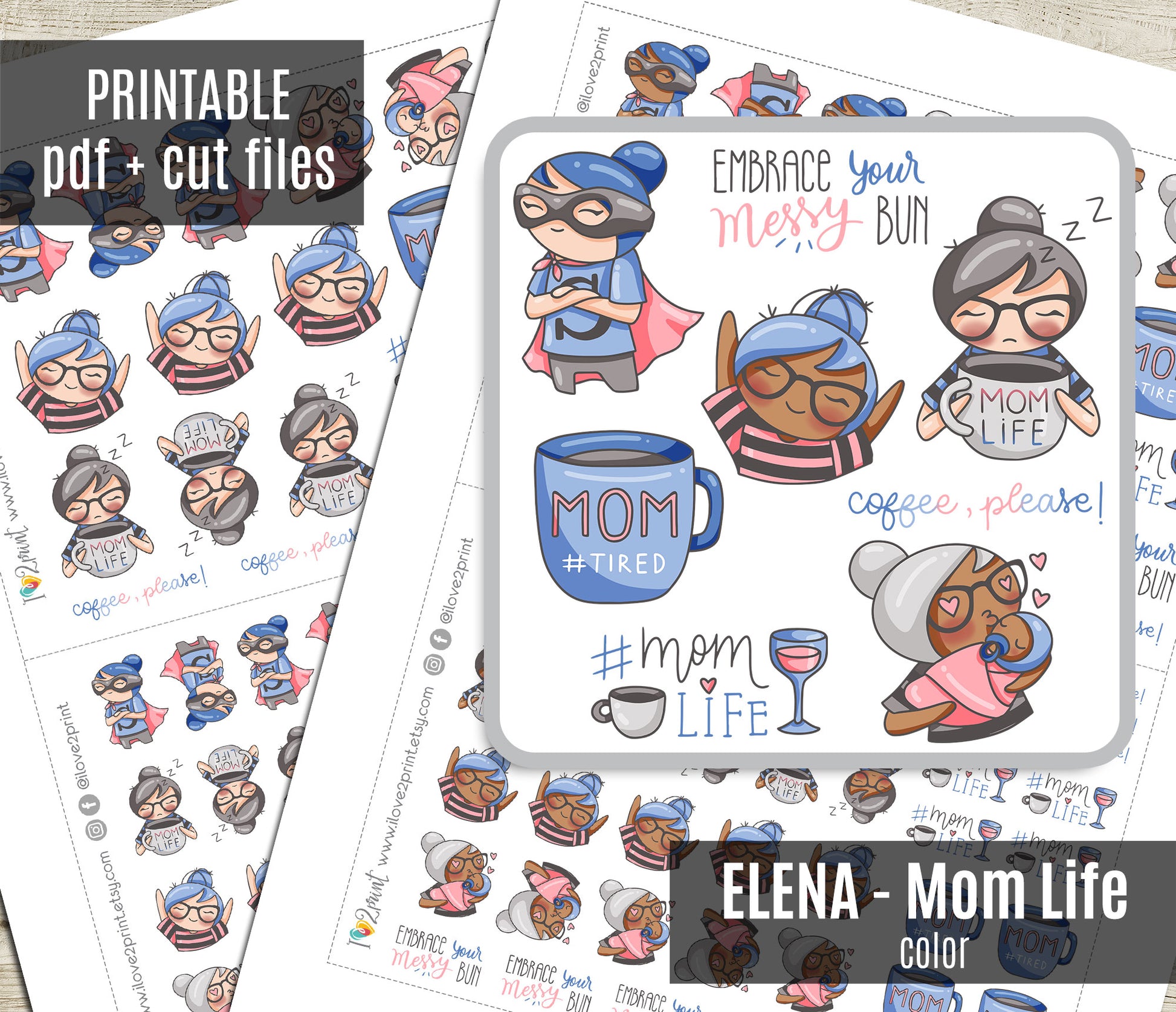 Elena Mom Life – COLOR Printable Planner Stickers – PDF & Cut Files – Instant Download