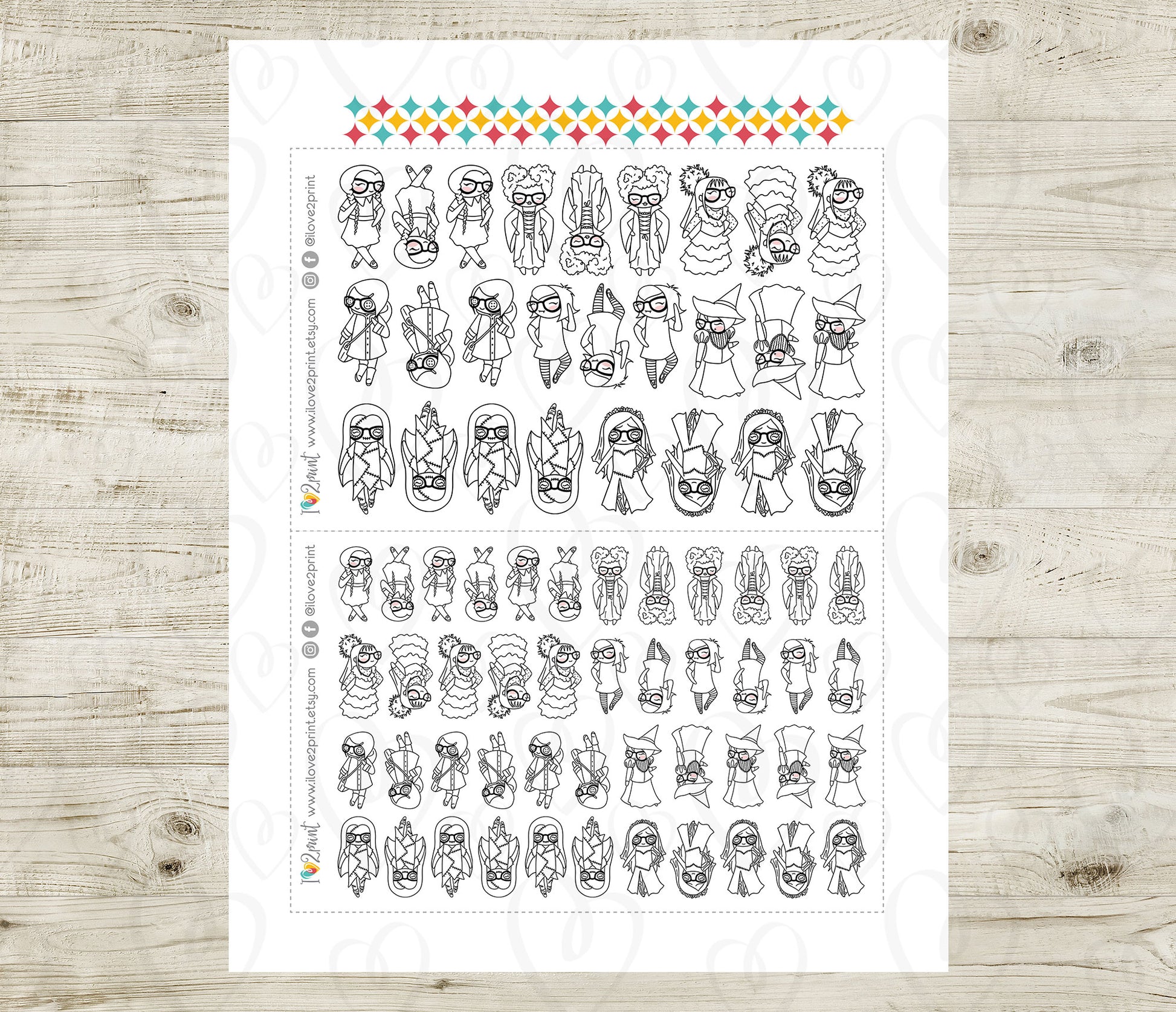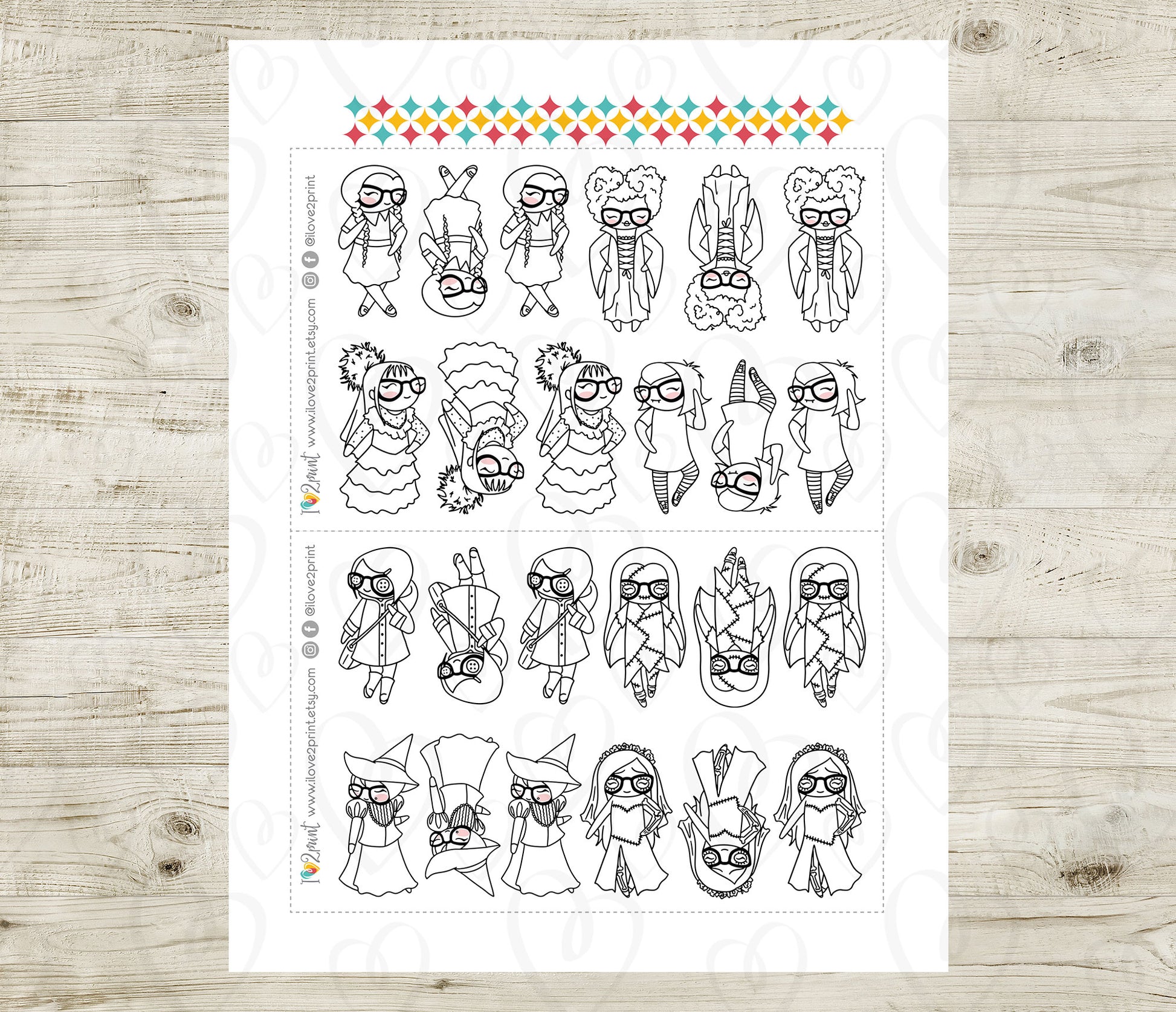 Elena Planner Girl – Halloween Costume DOODLE Printable Stickers – Famous Characters – PDF & Cut Files