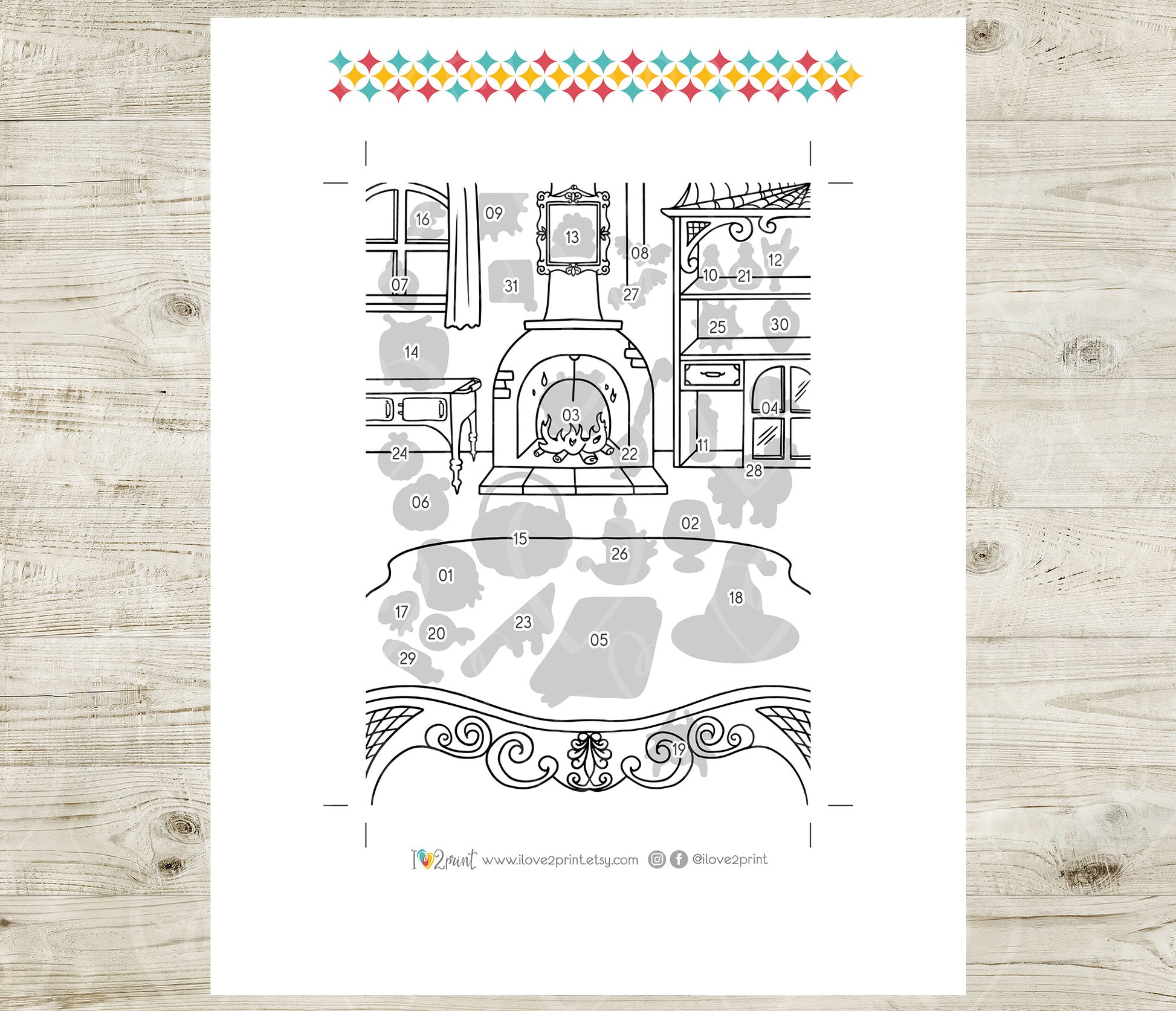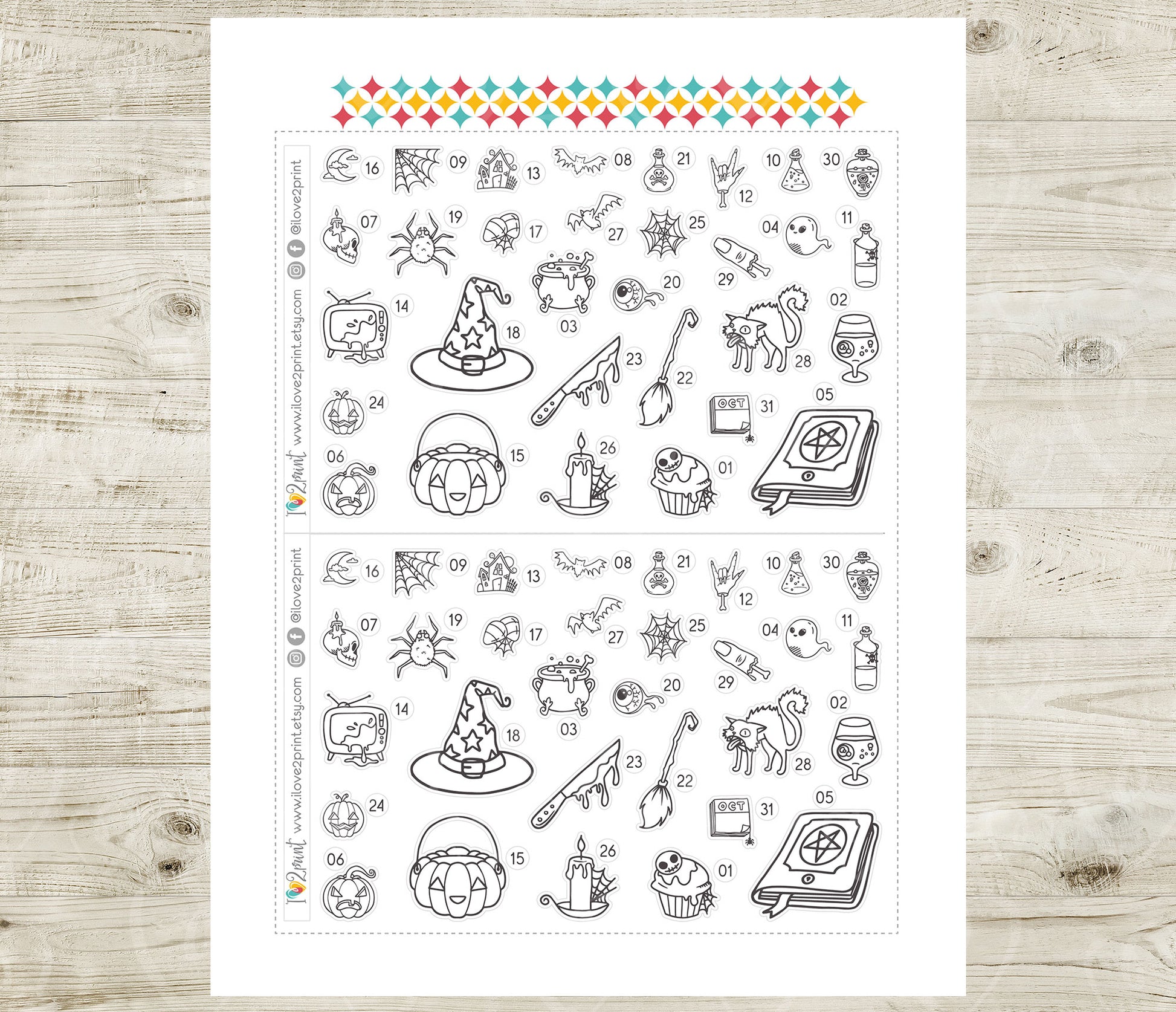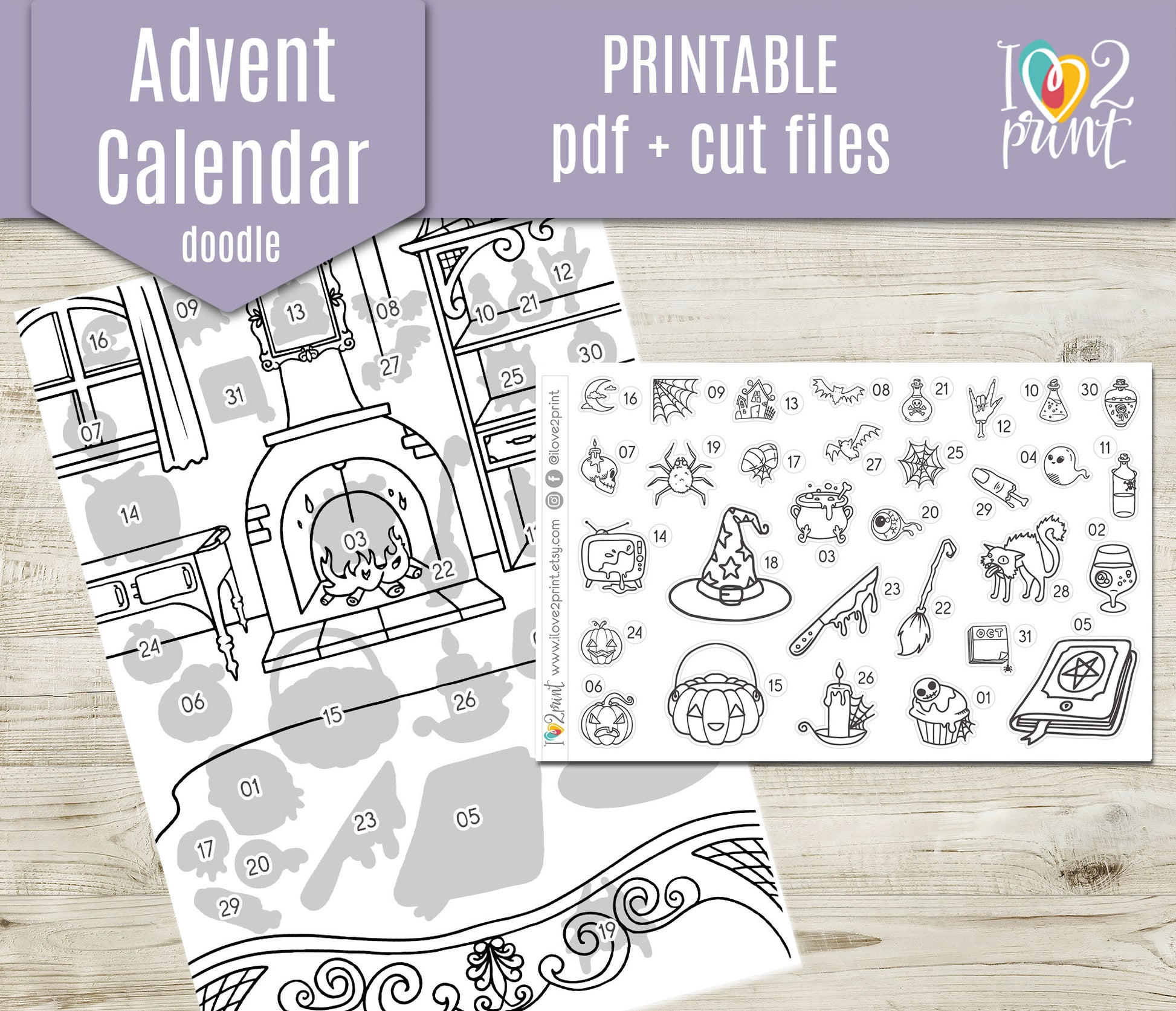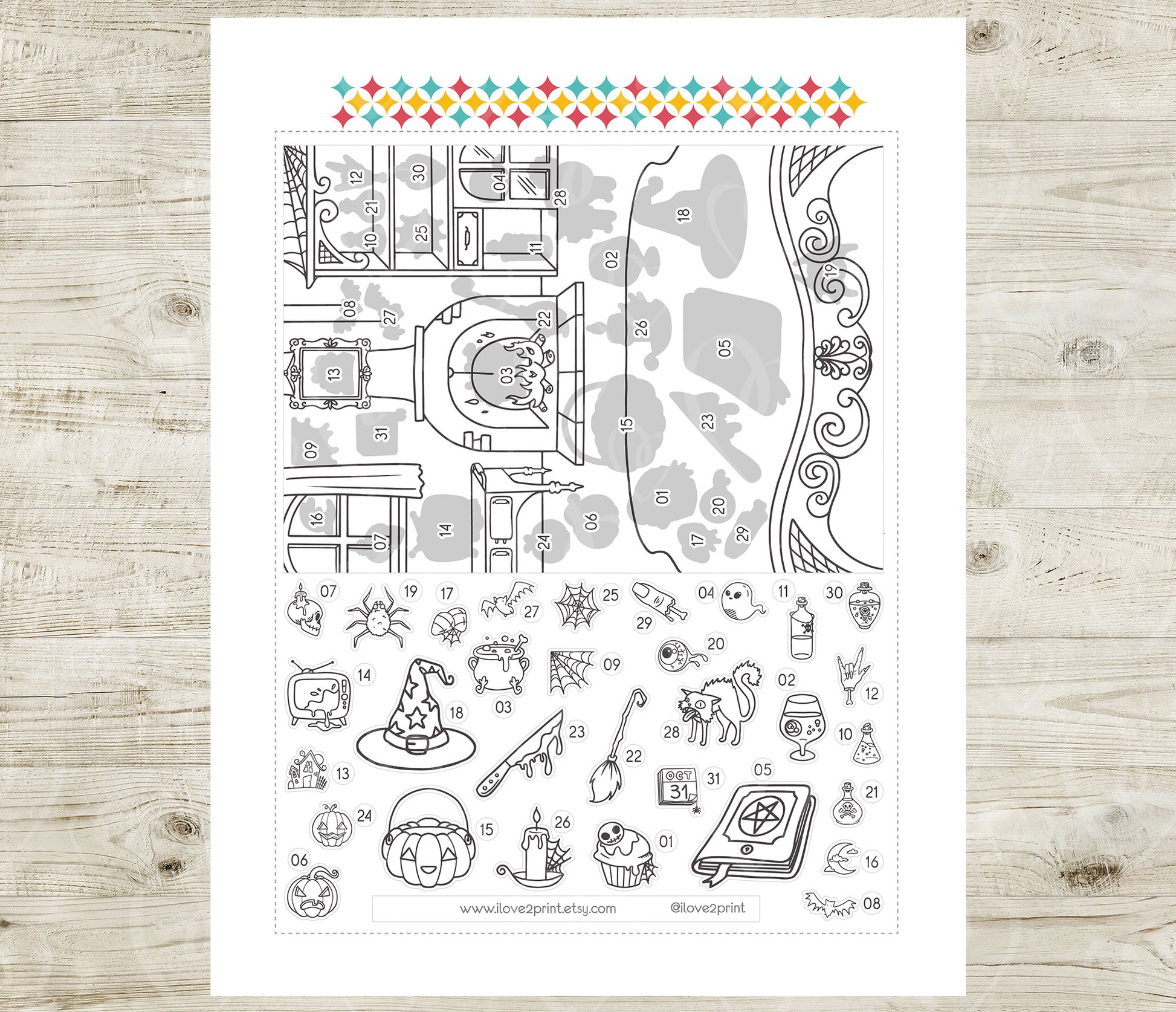 Halloween Advent Calendar Coloring Printable | Countdown Stickers | Instant Download PDF & Cut Files