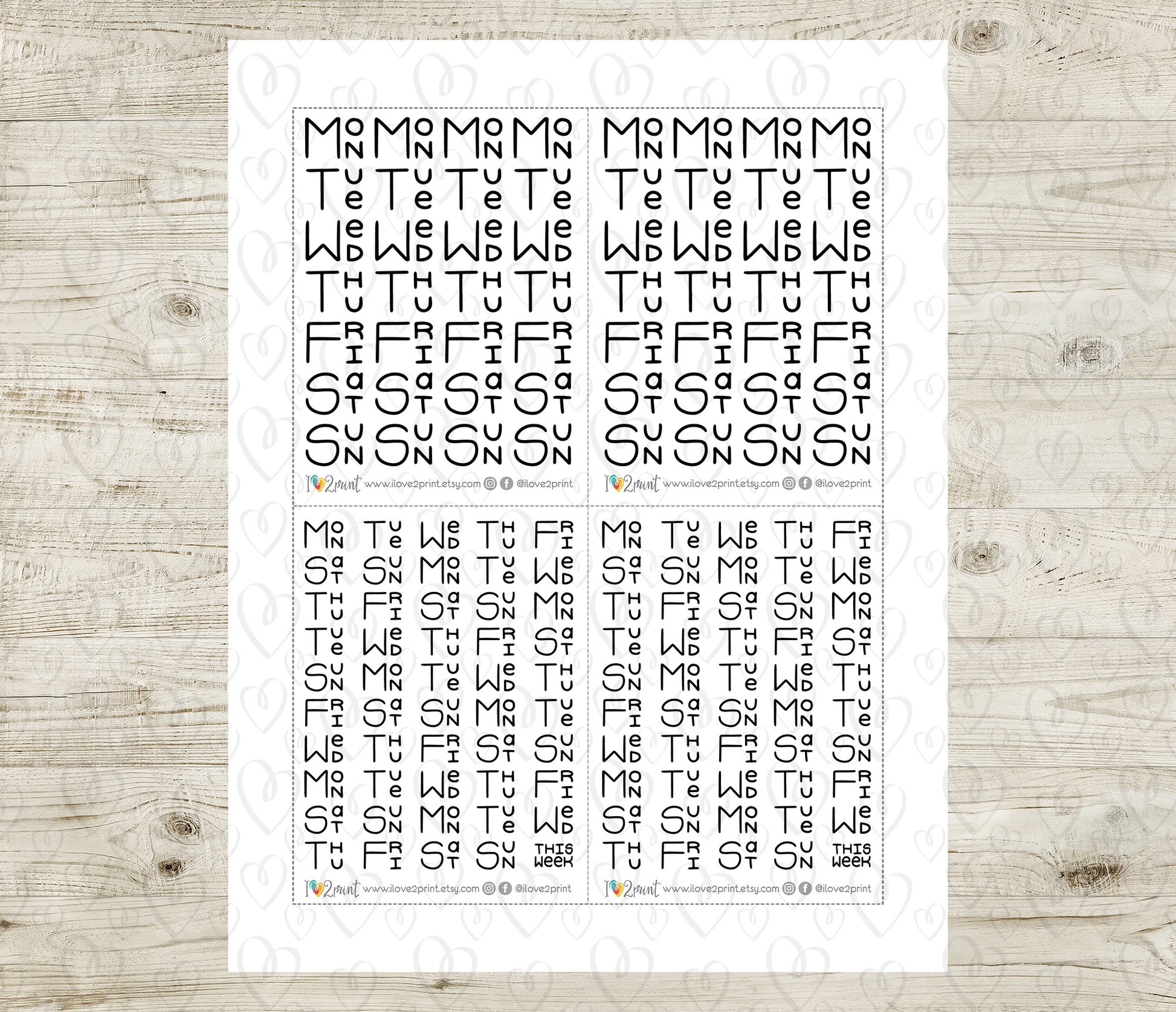 Handlettered Week Box Stickers | Printable Planner Week | Functional Journaling & Scrapbook Supplies