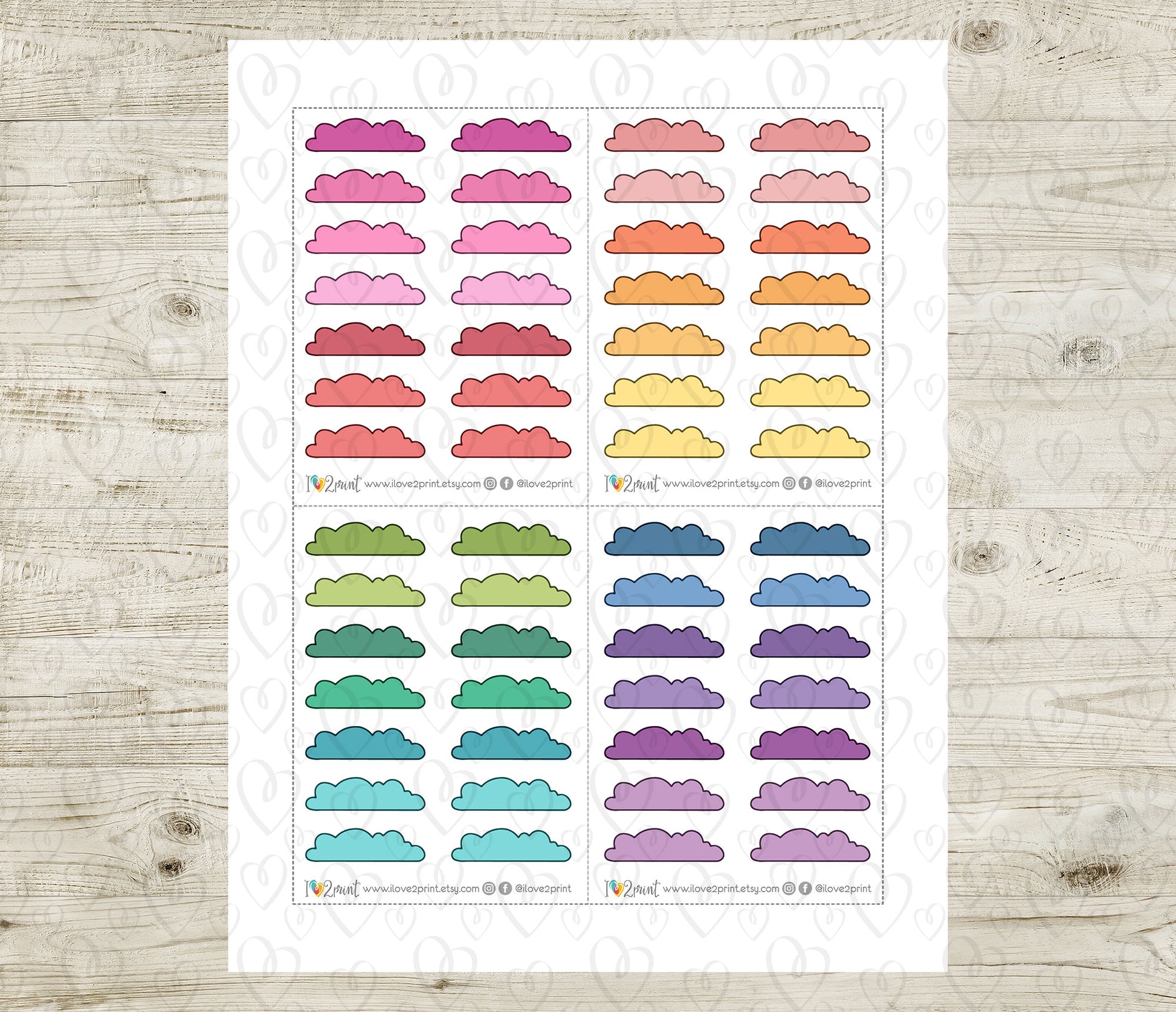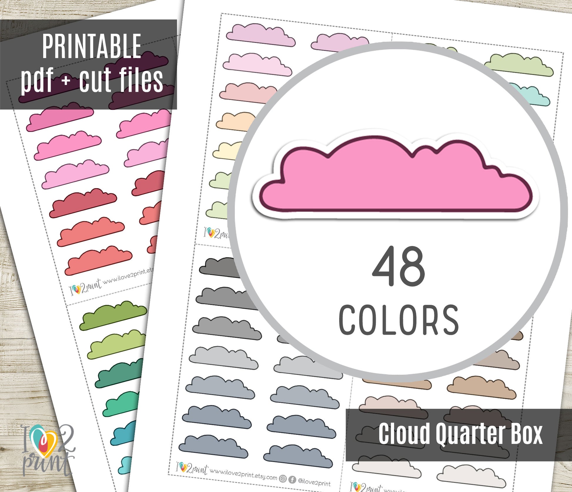 Color-code your life with our 48 Colorful Cloud Doodle Quarter Box Stickers! This functional set is perfect for organizing tasks, appointments, and notes in any planner or bullet journal. With a huge variety of colors, you'll always find the perfect shade. Instant download includes PDF and cut files for Cricut & Silhouette for easy home printing.