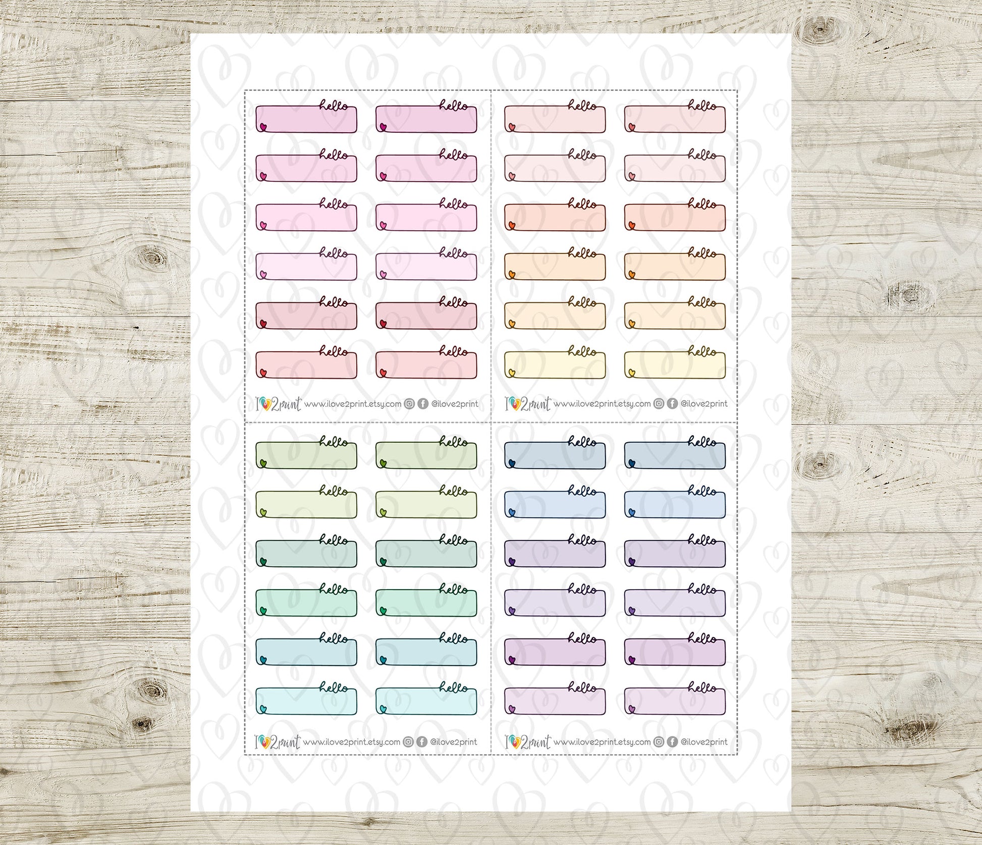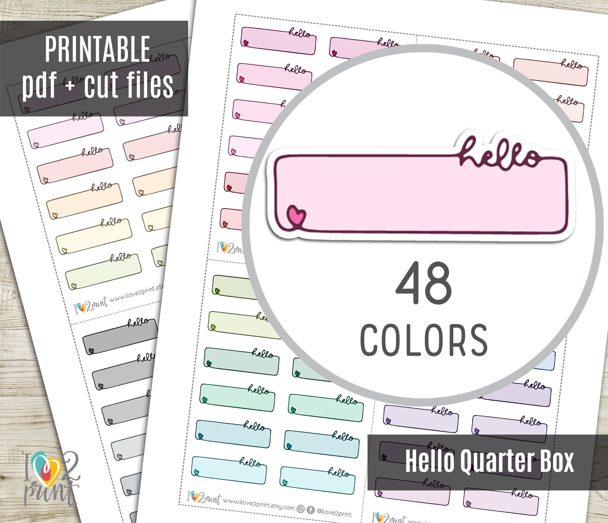 Color-code your life with our 48 Colorful Hello Note Doodle Quarter Box Stickers! This functional set is perfect for organizing tasks, appointments, and notes in any planner or bullet journal. With a huge variety of colors, you'll always find the perfect shade. Instant download includes PDF and cut files for Cricut & Silhouette for easy home printing.