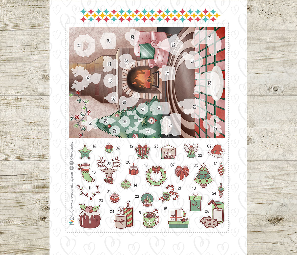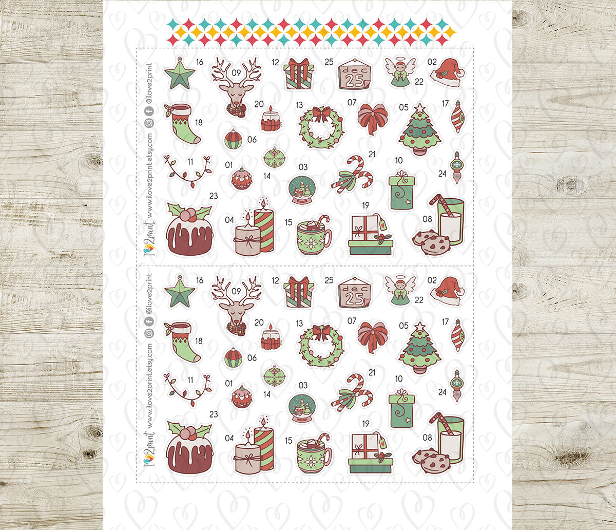 Christmas Advent Calendar Printable | Holiday Countdown Stickers | Festive PDF & Cut Files