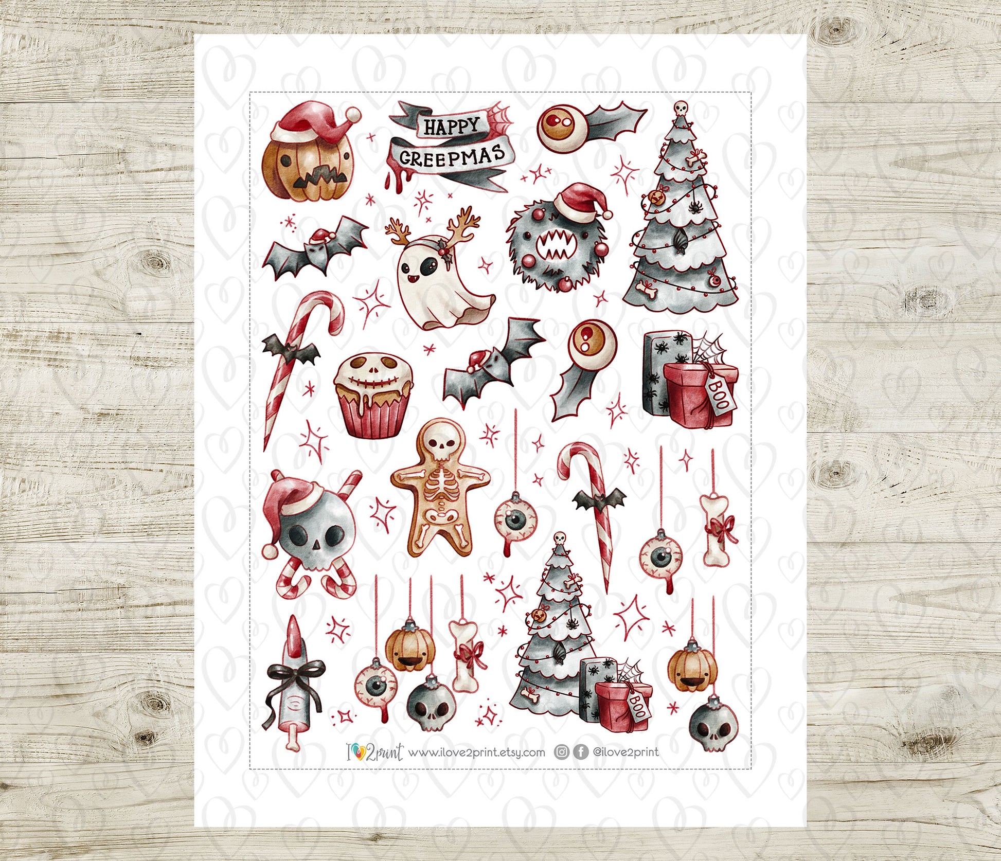 Unwrap some spooky cheer with our Creepmas Decorative Stickers! This unique hand-drawn collection blends Halloween charm with festive Christmas graphics, perfect for planners, junk journals, and holiday crafts. Available in 4 versatile sizes, these cute yet creepy stickers add a touch of alternative holiday spirit to any project. Instant download for your creative fun!