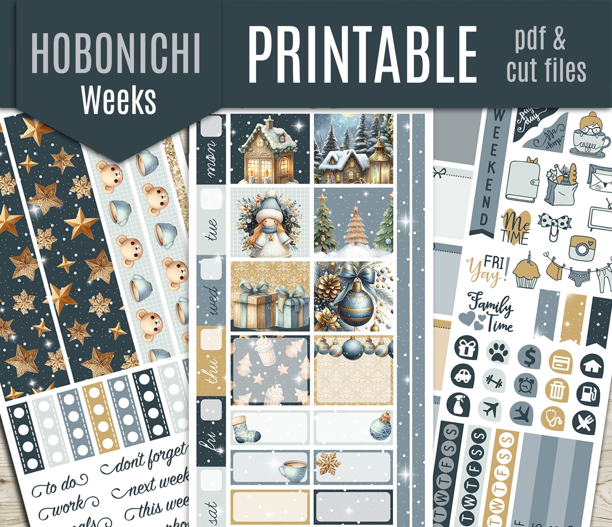 Cute Christmas Hobonichi Weeks Weekly Kit | Planner Stickers | Printable & Cut Files