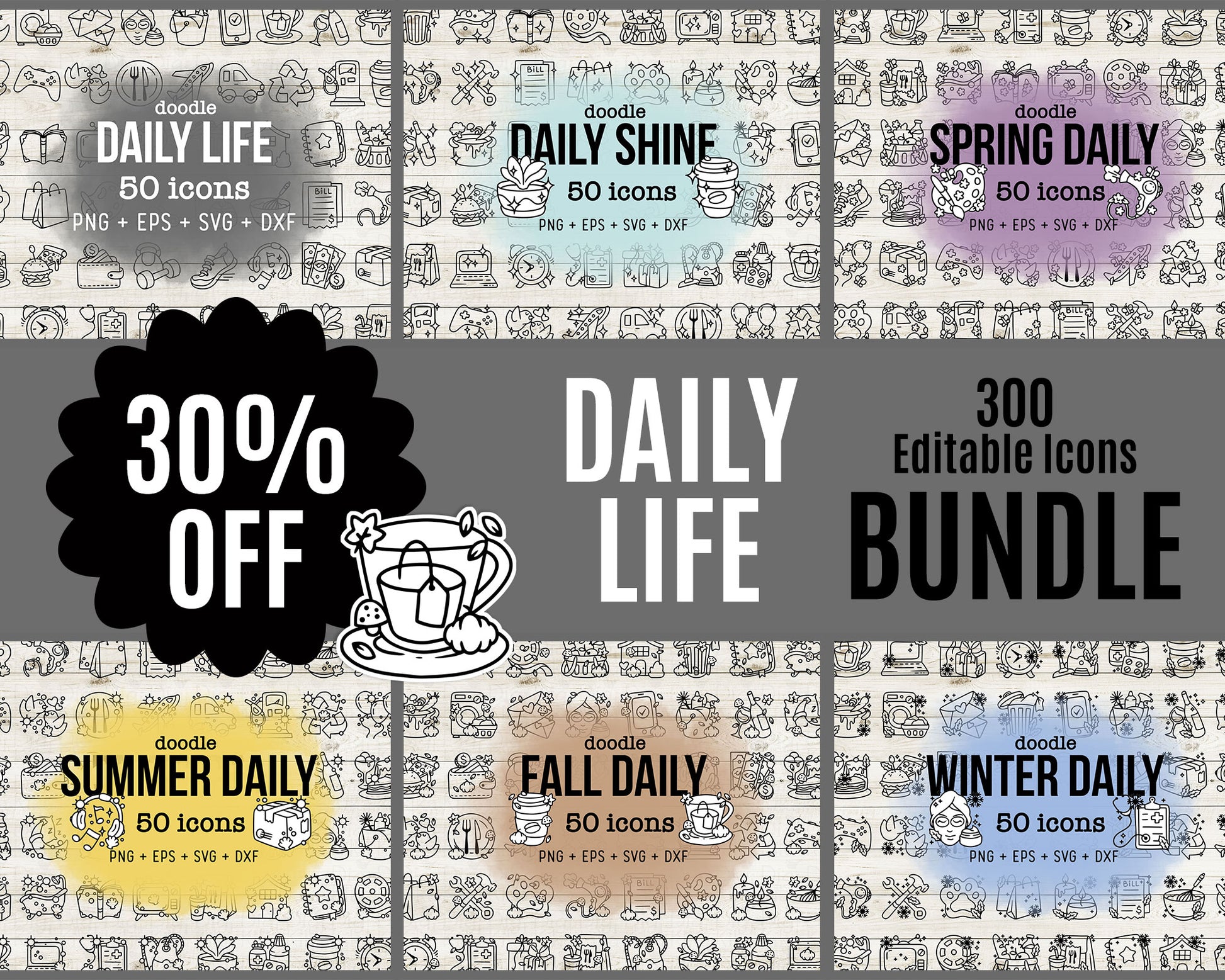 Daily Icons DOODLE Mega Bundle – 6 Seasonal & Themed Clipart Sets - Editable Graphics