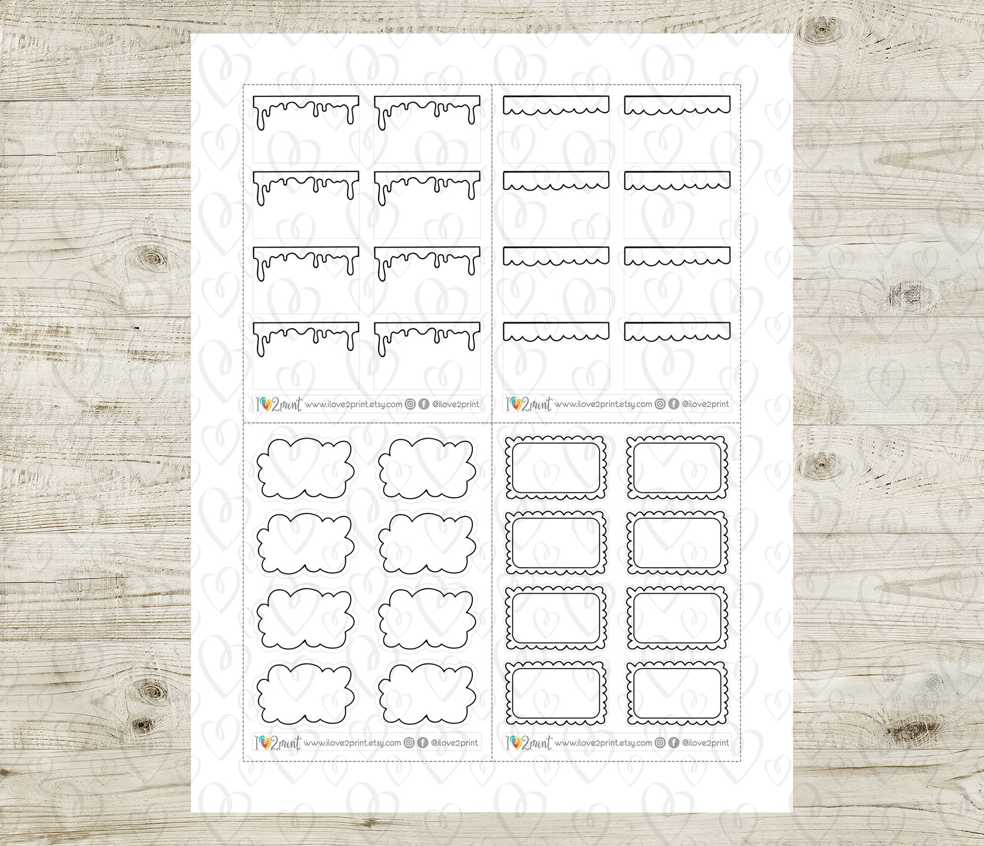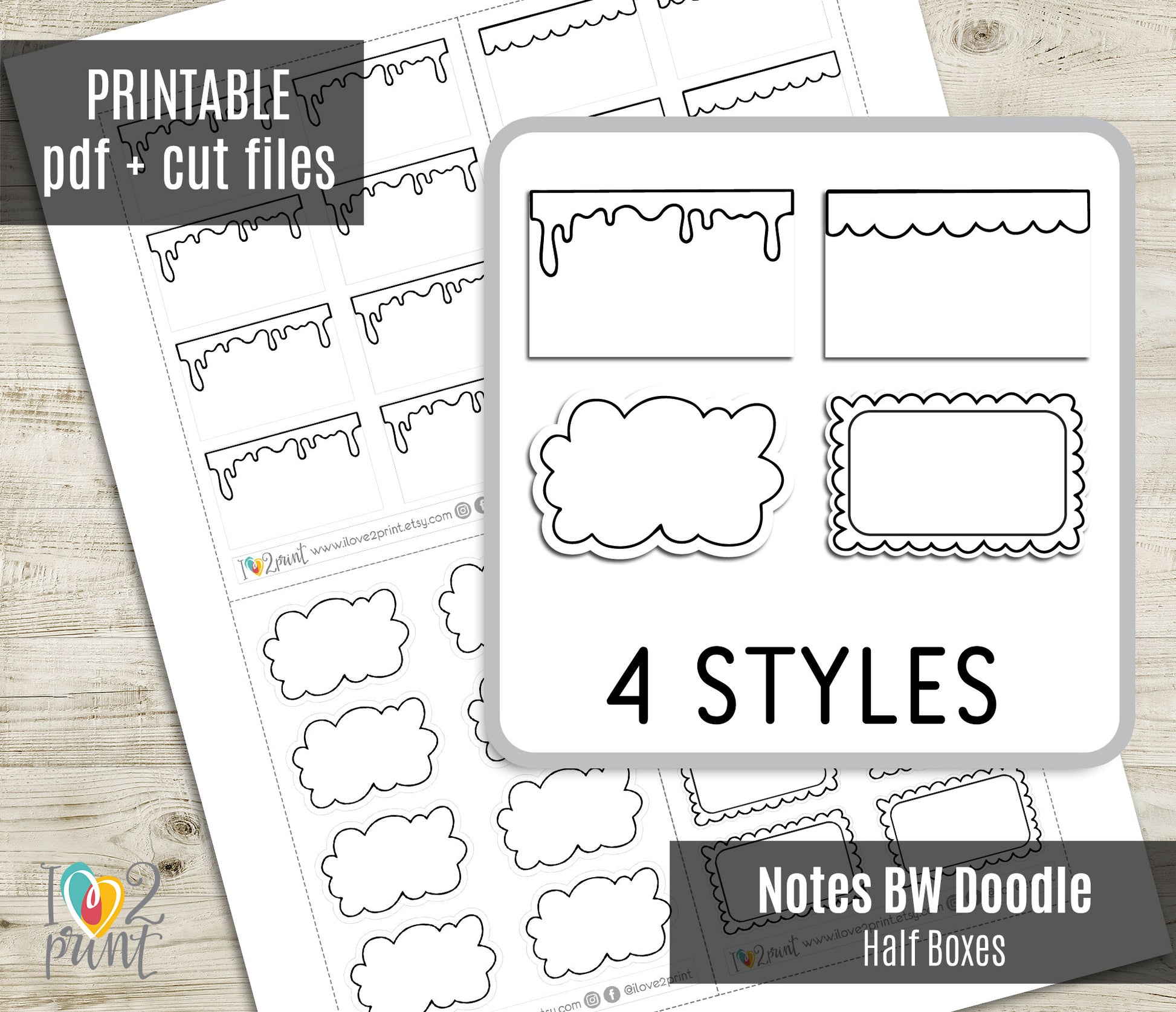 Doodle Notes Printable Planner Stickers | Scallop Ink Bubble Half Boxes | 4 Variations | PDF Cut Files
