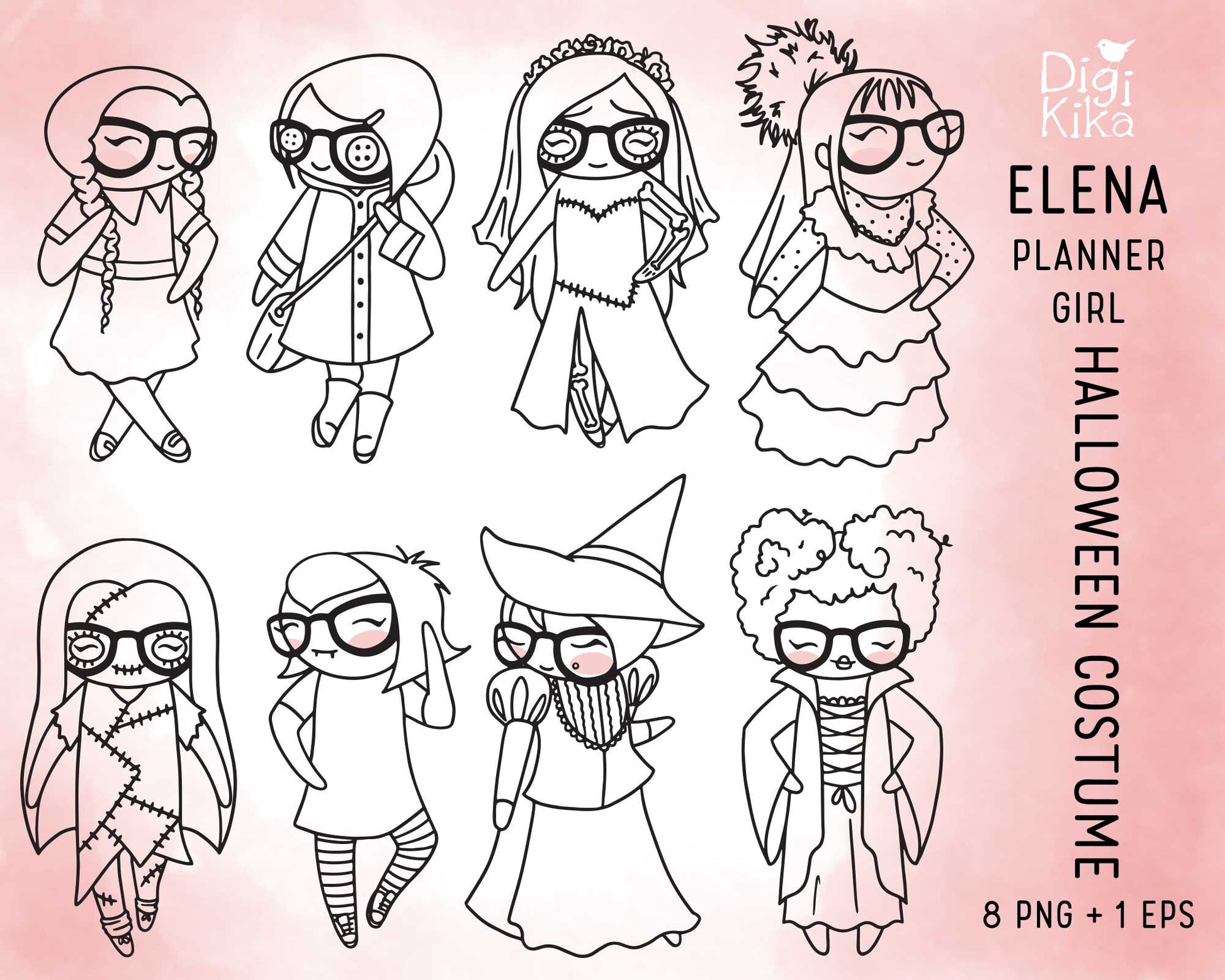 Elena Planner Girl – Halloween Costume Clipart Set – Famous Characters – Instant Download PNG