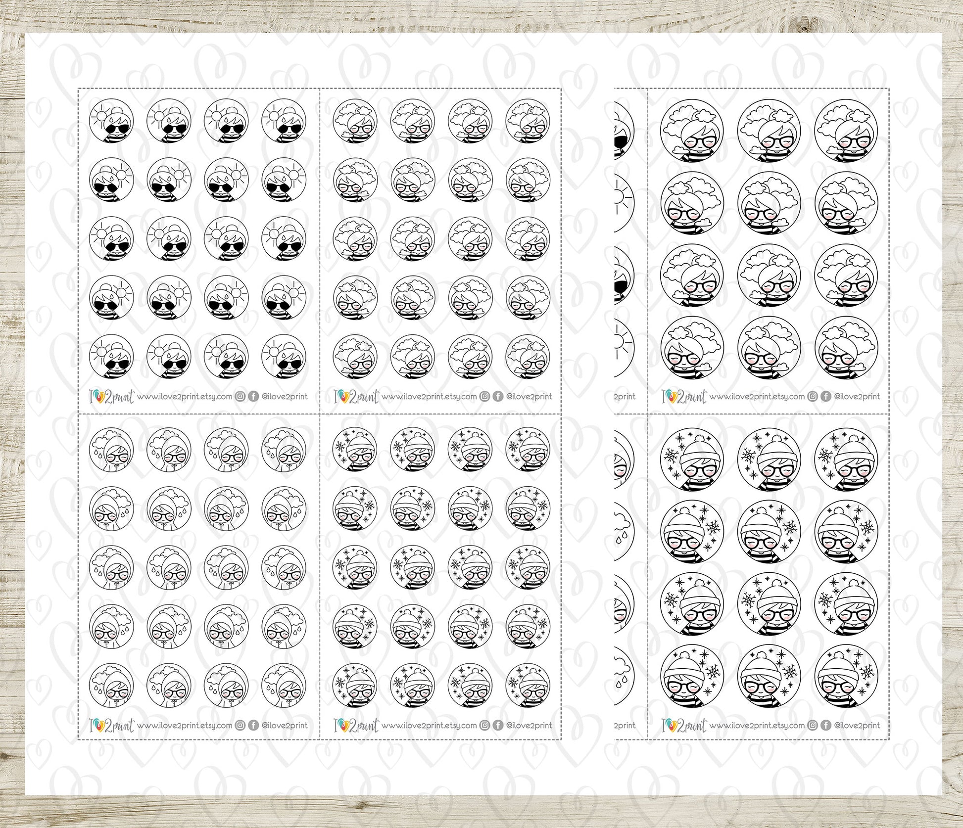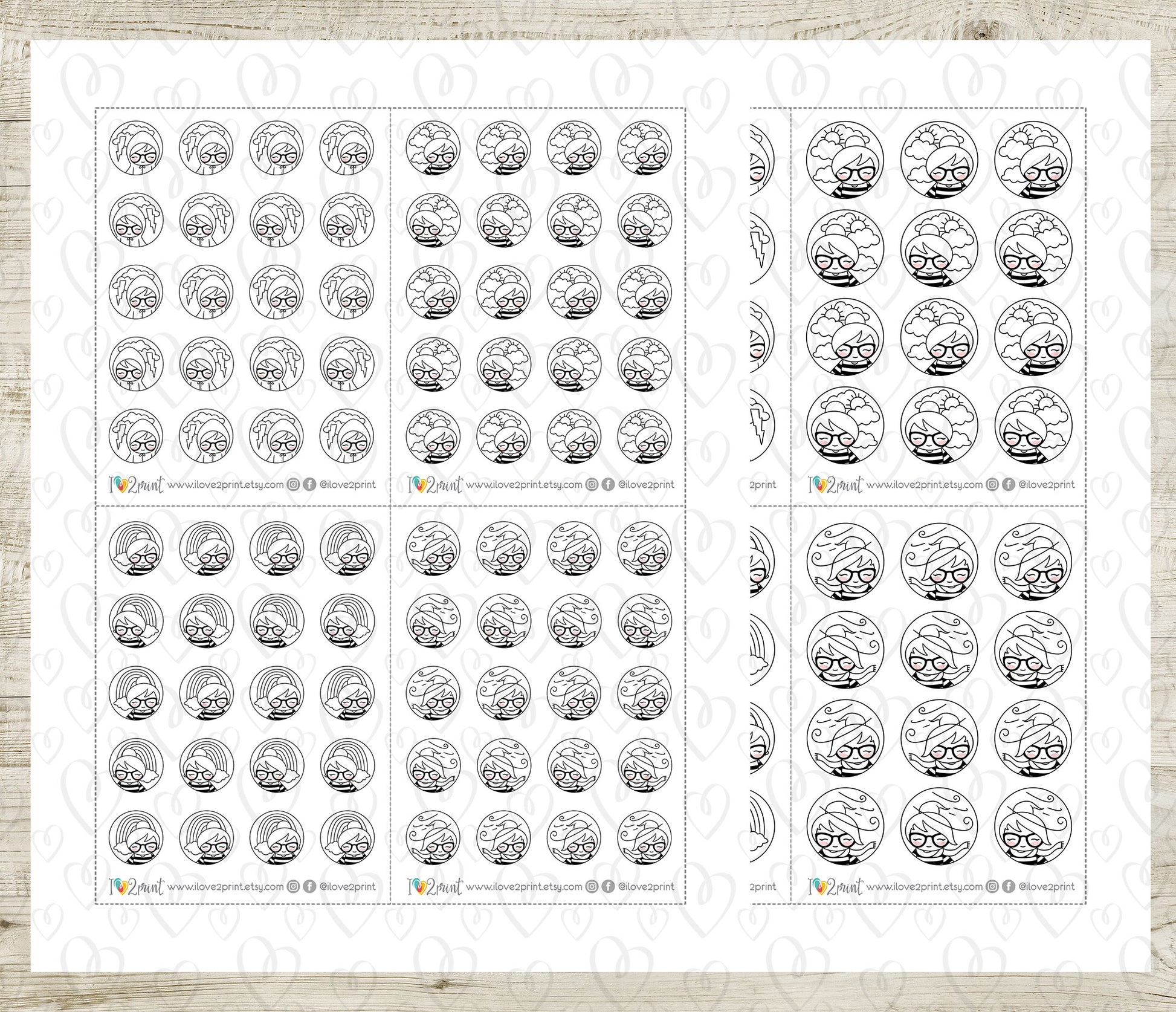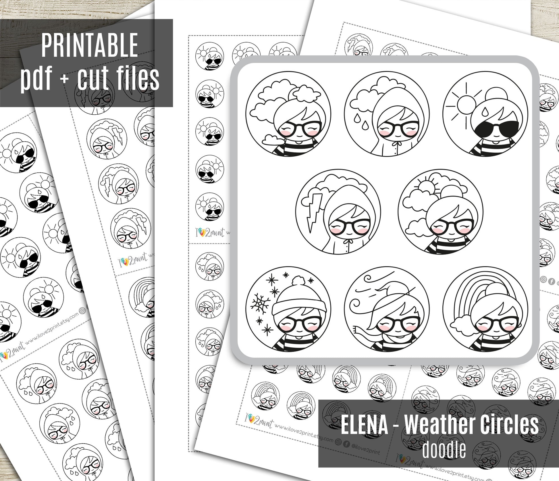 Elena Weather Circles – DOODLE Printable Planner Stickers – PDF + Cut Files