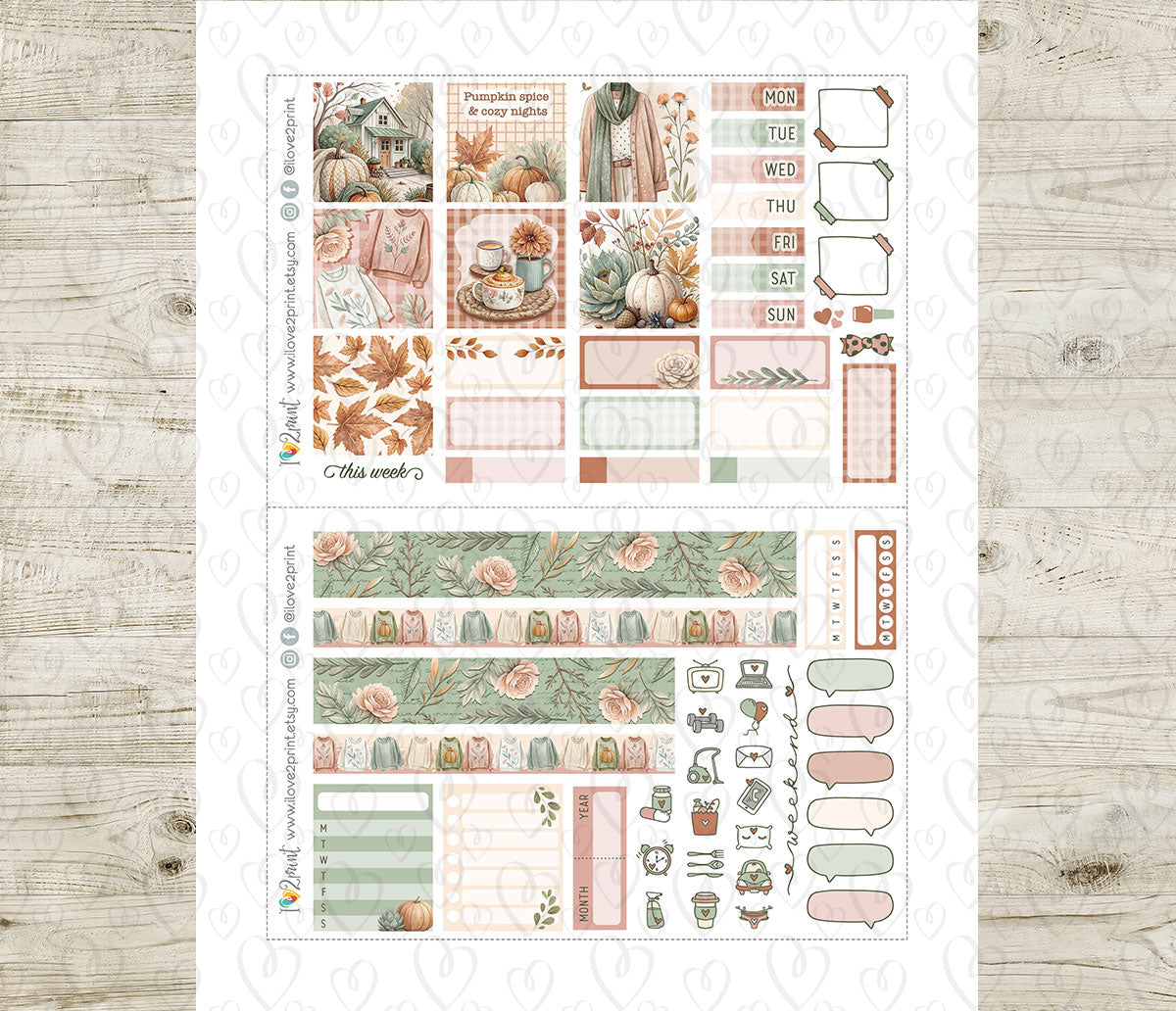 Bring warm autumn vibes to your Hobonichi Cousin with the Falling for Fall collection. This printable sticker set features AI-crafted Graphics of cozy fall outfits, sweaters, candles, pumpkins, and florals—perfect for mixing decorative and functional planning. Includes PDF sheets and cut files for easy use with Silhouette or Cricut.