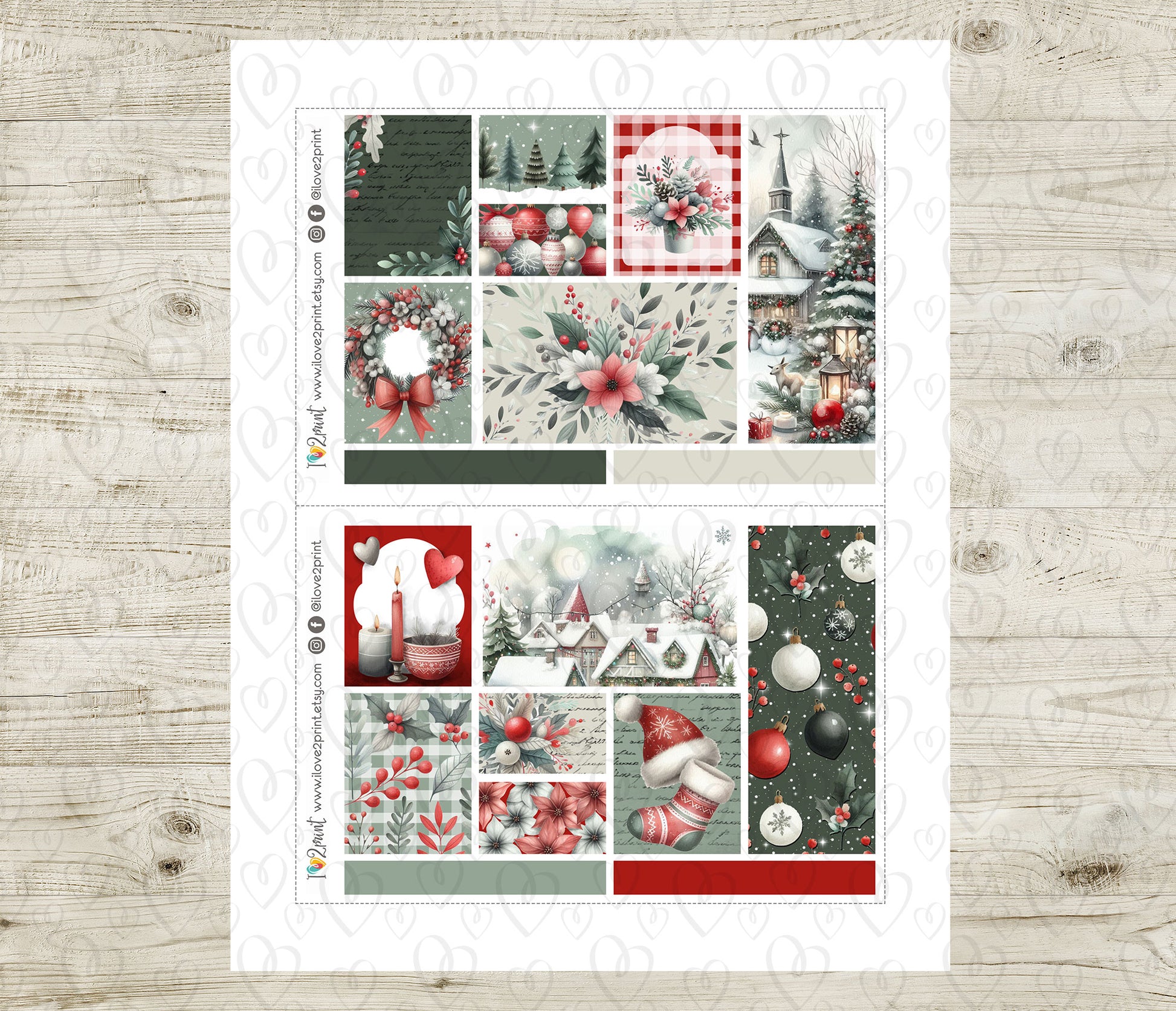 Holidays Flowers Moodboard Stickers - Christmas 1,5" boxes Printable PDF & Cut Files