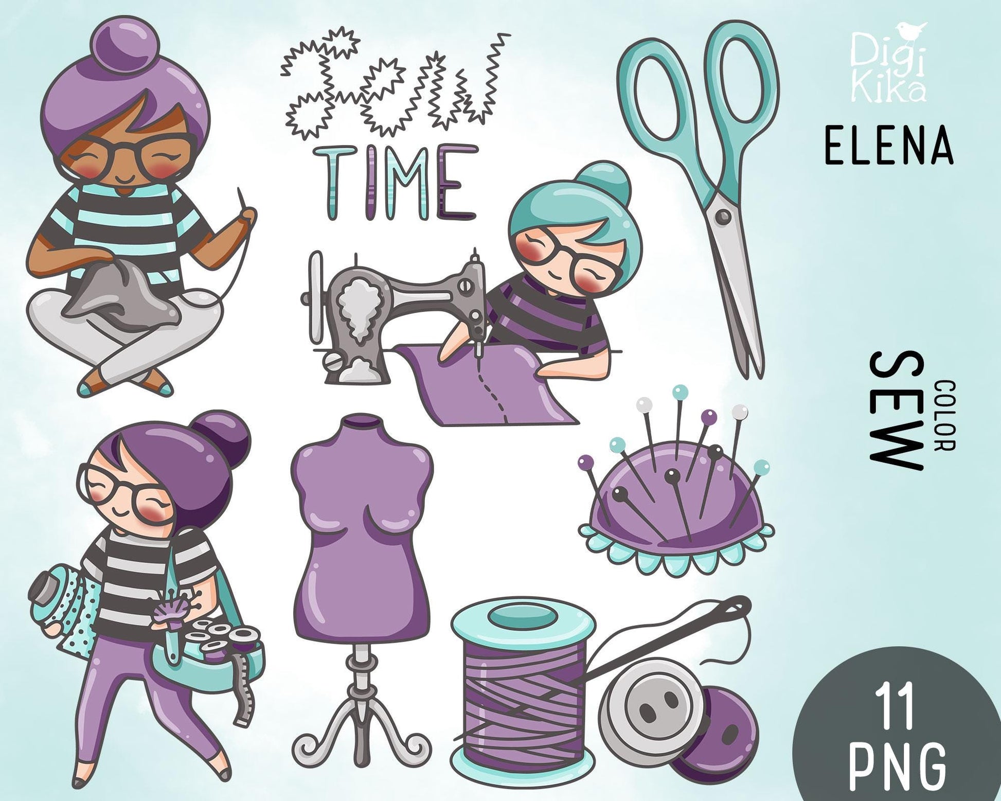Sewing Clipart Set – Elena the Planner Girl – Crafty Color Illustrations
