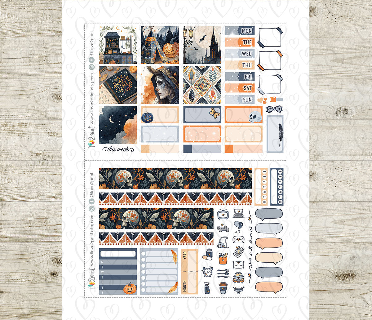 Tribal Halloween – Hobonichi Cousin Stickers – Printable PDF & Cut Files