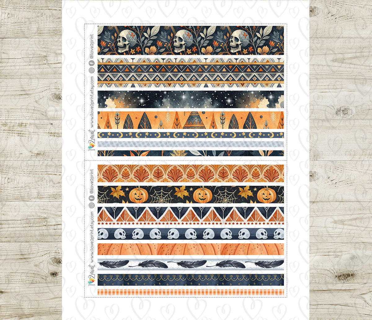 Tribal Halloween – Washi Tape Strips Stickers – Printable PDF & Cut Files
