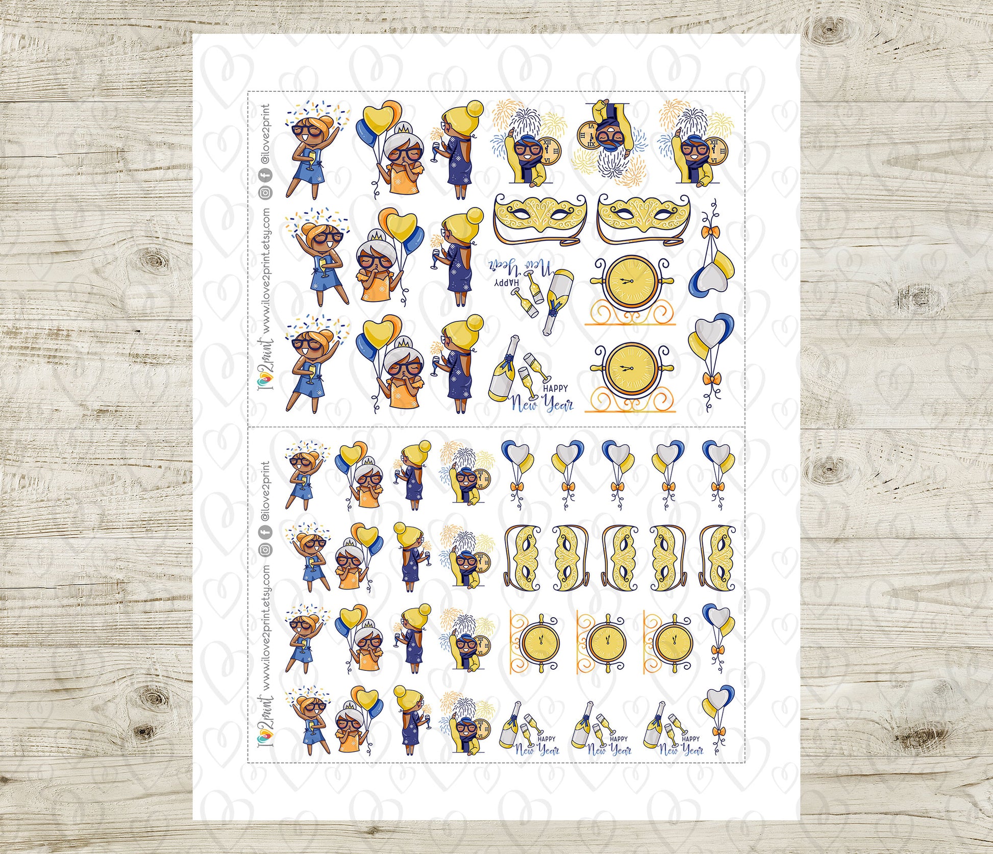 Elena Happy New Year – Doodle Printable Planner Stickers – PDF & Cut Files – Instant Download