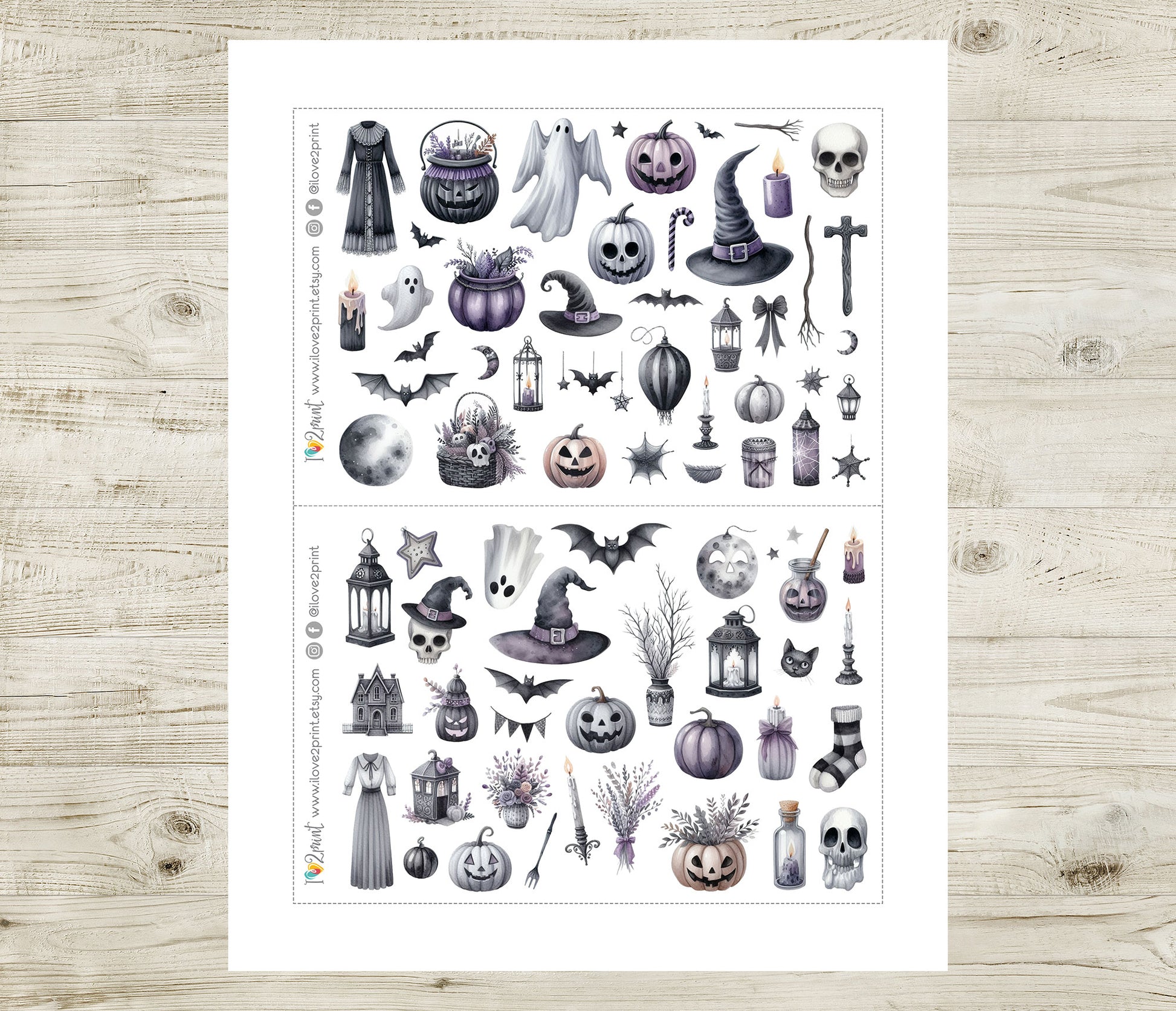 Gothic Halloween – Printable Stickers – PDF & Cut Files