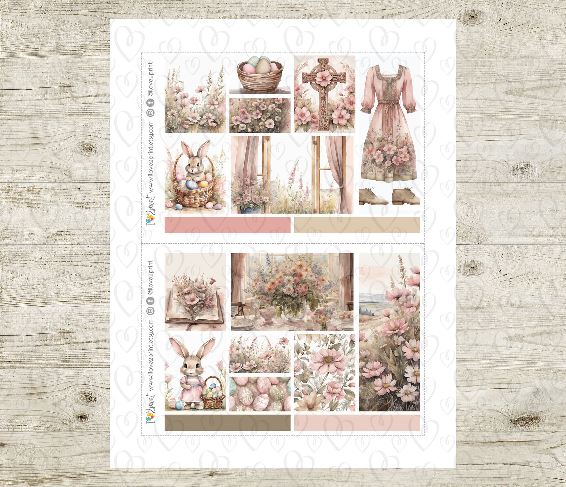 Easter Moodboard Set Stickers – 1.5" Boxes - Printable PDF & Cut Files