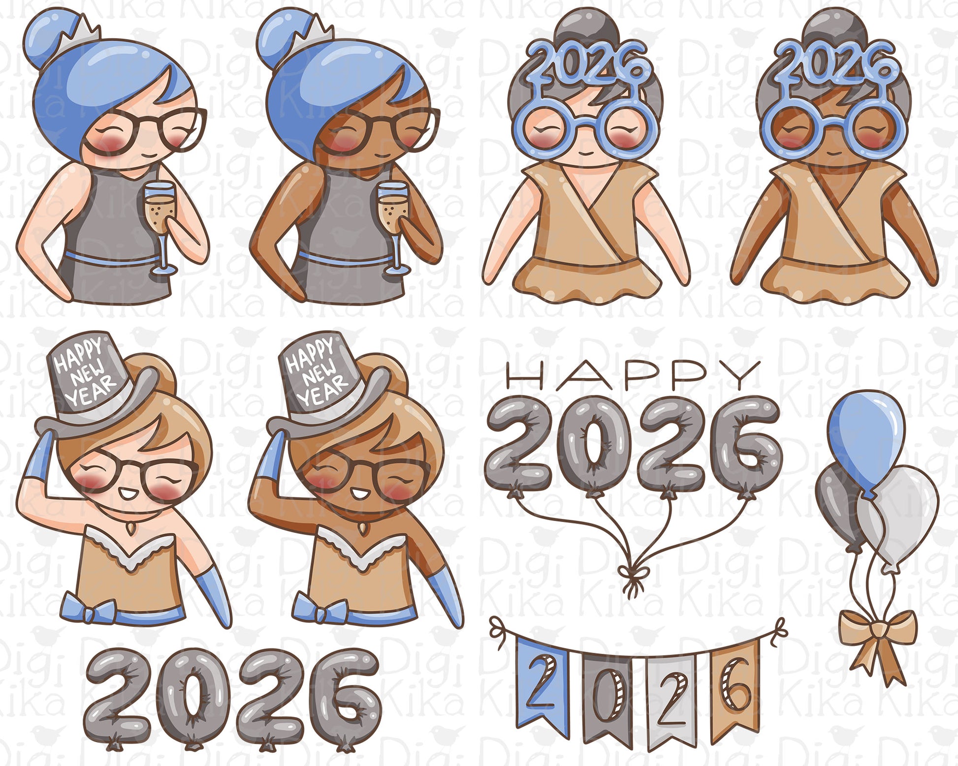 Welcome the new year with Elena in this festive Happy 2026 Color Clipart Set! Featuring our beloved planner girl in 2 skin variation celebrating New Year in a playful style. This versatile collection includes transparent background PNG perfect for digital planners, printable decorations, 新年 invitations, and commercial projects. The high-resolution files maintain quality at any size, making them ideal for both digital and print applications.