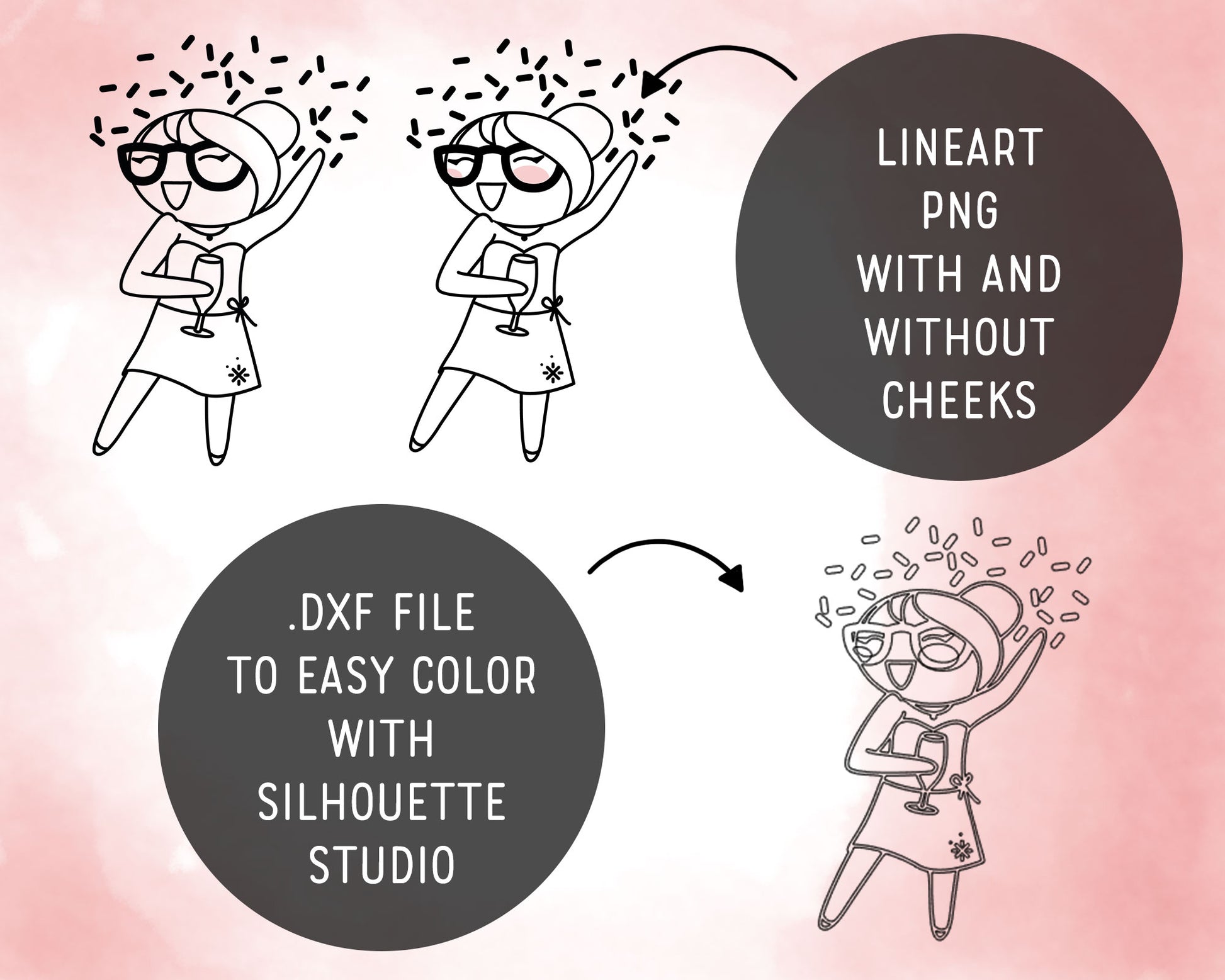 Celebrate fresh starts with this playful Elena Happy New Year Doodle Clipart Set, featuring our favorite planner girl in party mode with doodle-style fireworks, balloons, party dress, and sparkling cider toasts. These charming hand-drawn illustrations come in multiple formats perfect for digital planners, custom stickers, party invitations, or festive social media graphics. The set includes high-resolution files that maintain their quality whether used for web design or printed projects.