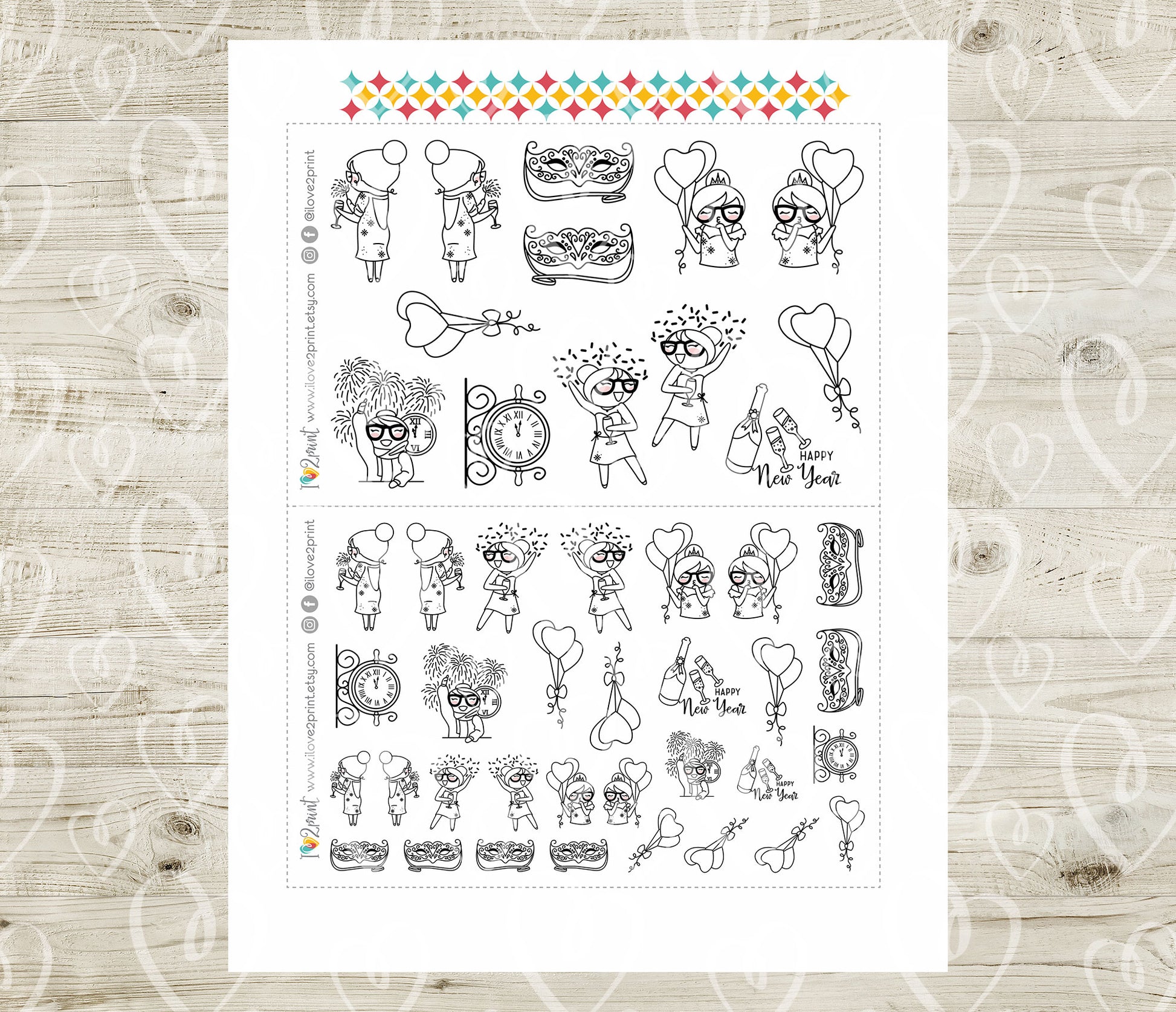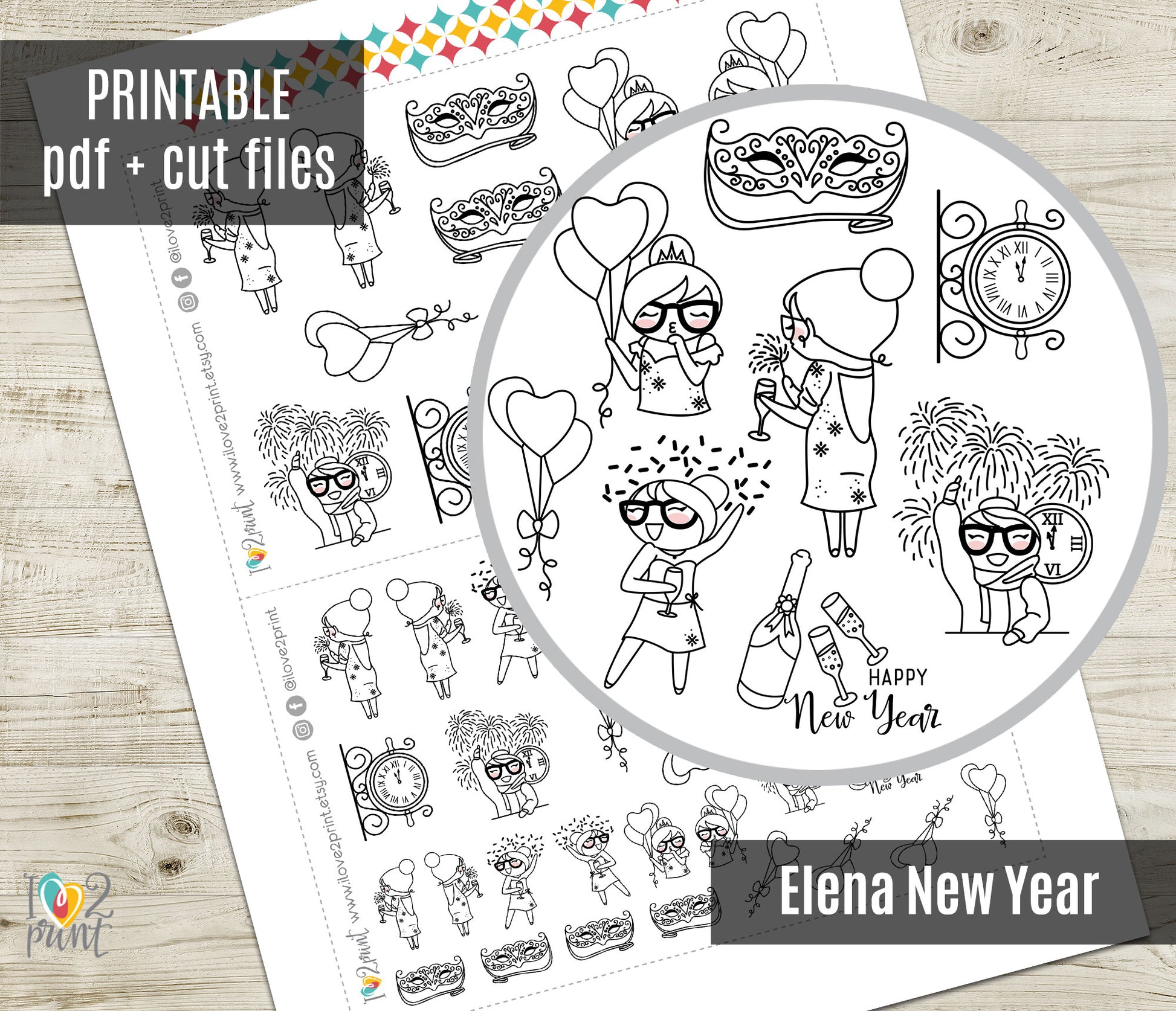 Elena Happy New Year – Doodle Printable Planner Stickers – PDF & Cut Files – Instant Download