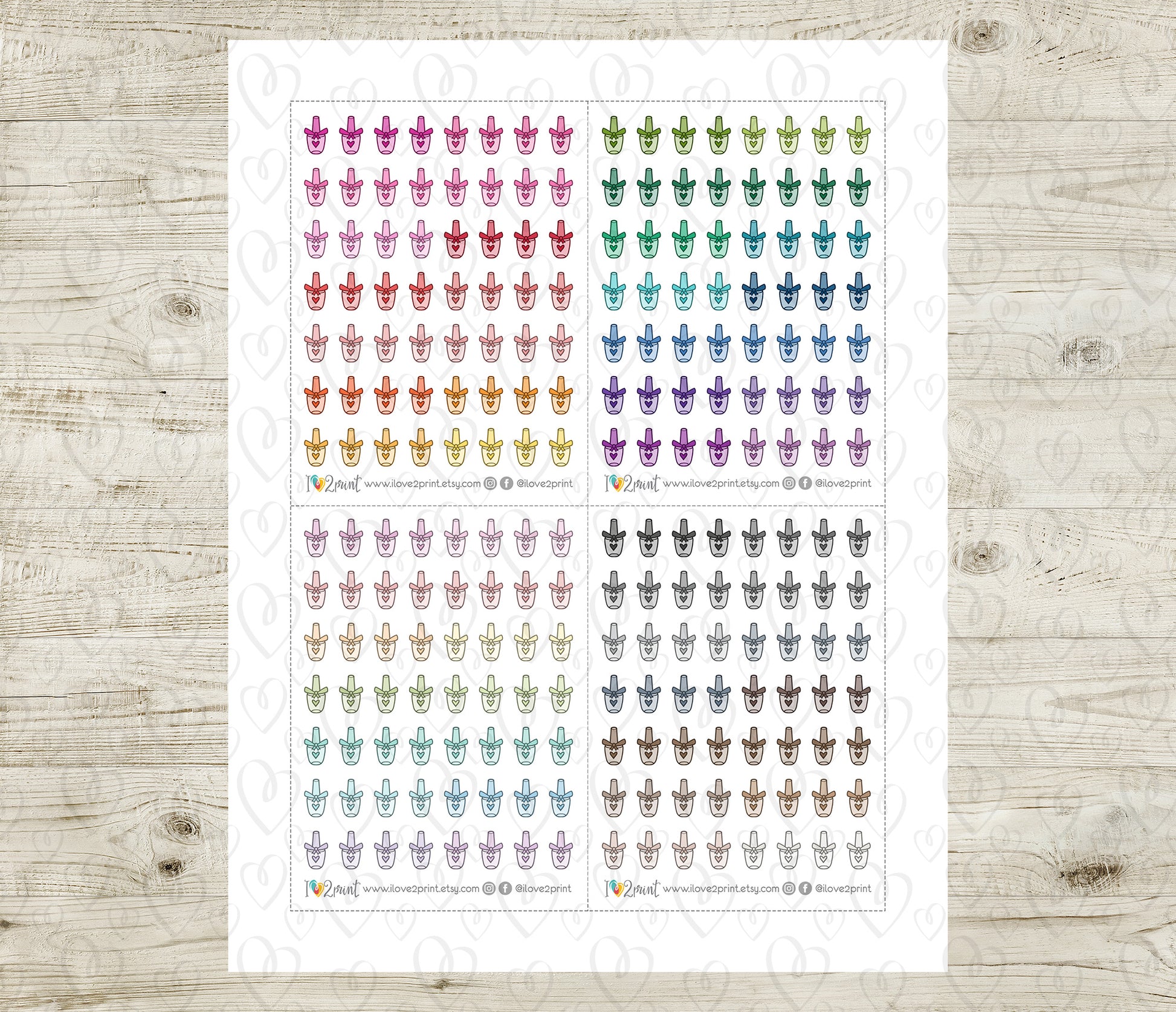 Nail Polish Mini Icons – Functional Printable Stickers in 48 Colors – PDF & Cut Files